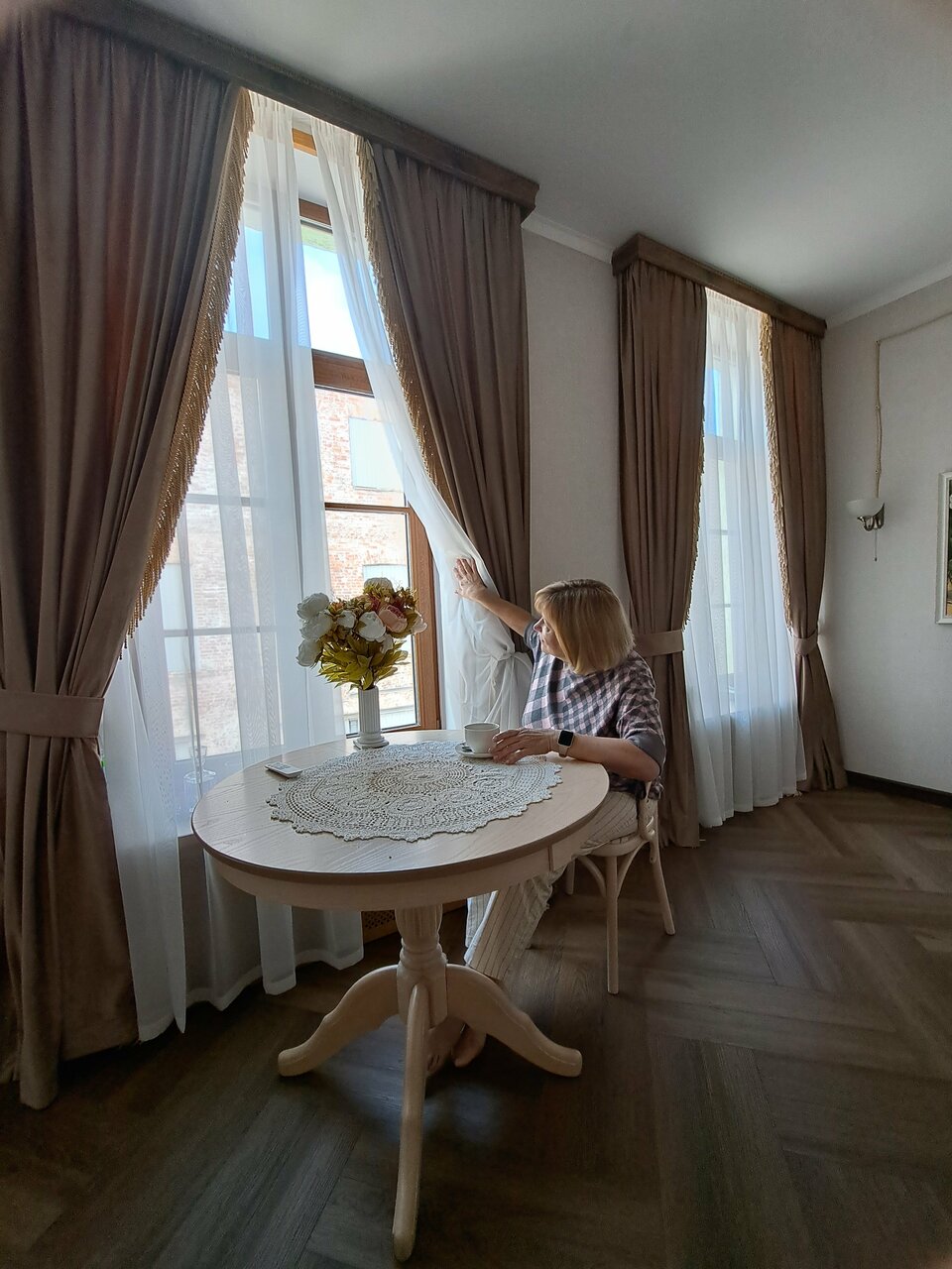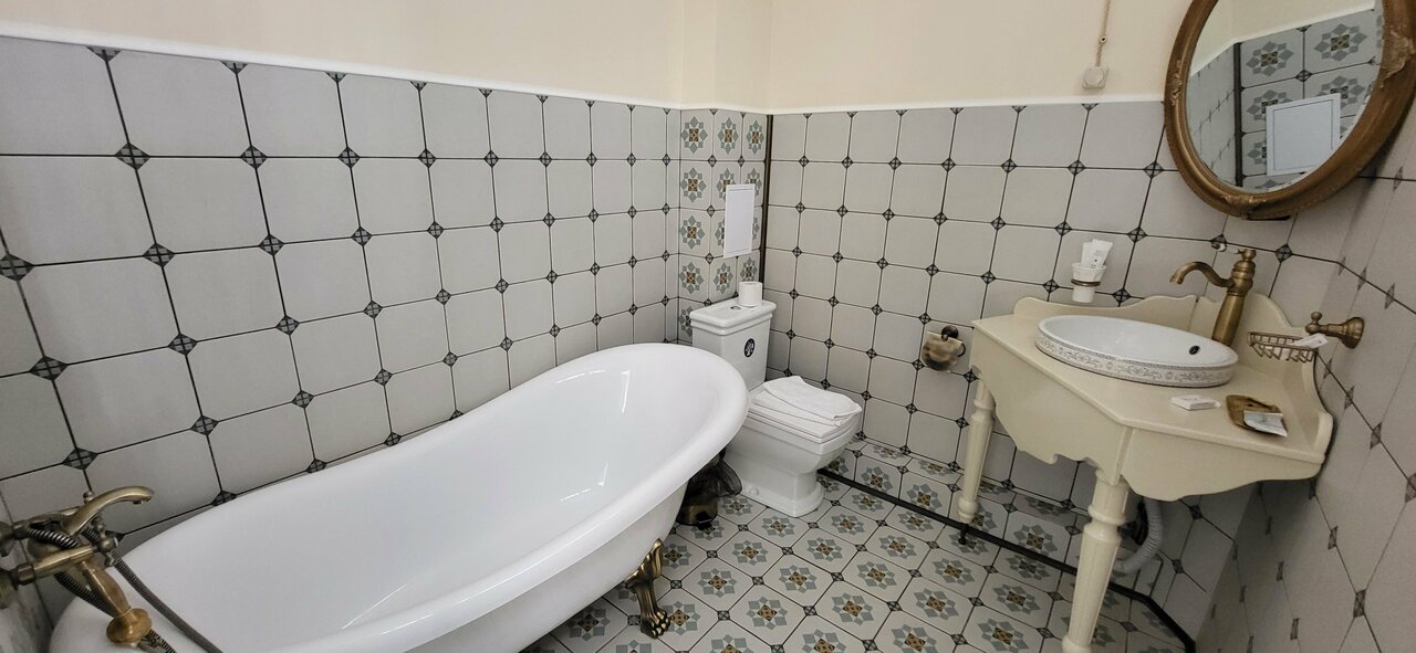 Написала я большой отзыв но яндекс все удалил своим глюком( Отель огонь, я очень рада, что в нем остановились, приятный комплимент в виде двух кренделей, которые изготавливается в пекарне под отелем, очень приветливый персонал в красивых аутентичных нарядах, очень заботливый, с самого утра дали инструкцию по заселению на вотсап стиль отеоя выдержан от и до, обратите внимание при заселении на нумерацию комнат Восхитительная кровать, подушки и тяжелое одеяло…кааайф Душ принимать не очень удобно, но полежать в горячей красивой ванной с кайфом В номере есть балкон, на окнах москитные сетки,а ещё отель оставил в номере фумигатор от комаров, что очень вырубило, т.к. комаров немерено В холле есть кулер с водой, в номере чайник, холодильник, вентилятор, графин для воды, бокалы, чайный набор, телевизор Рекомендую!!! С удовольствие вернусь ещё