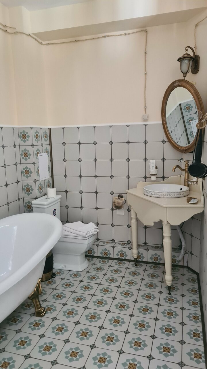 Заселение заняло пару минут, номер чистый, есть тапочки, штопор, чайник, кружки, чай. Очень уютный, приятный отель, с хорошим запахом) На первом этаже есть кафе, место раскручено спору нет, но если объективно, нам есть было нечего, меню скудное очень, кофемашина была сломана, только американо можно было взять. Так что всегда есть но… Шумоизоляция, если не повезёт с соседями, то сна не будет 100%, нам повезло, пенсионеры-соседи сходили в душ в 21-15 и легли спать)