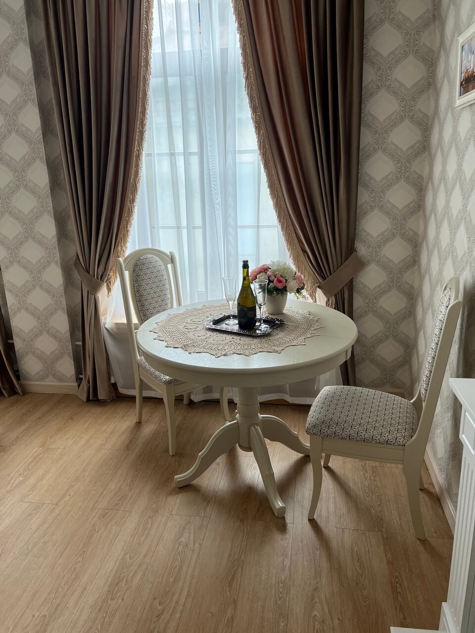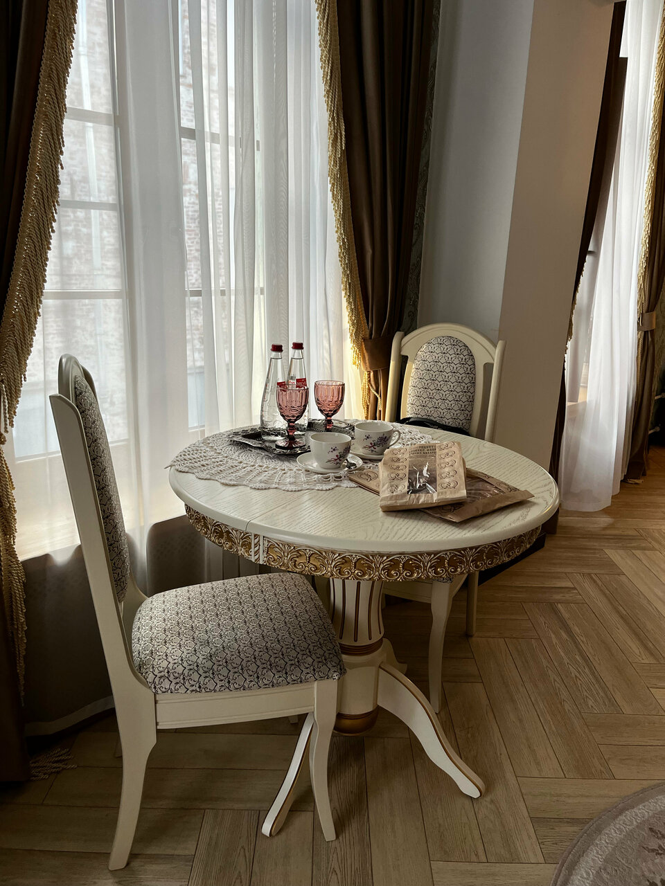 Останавливались в Ретро отеле в номере 1293 . Просторный и в тоже время очень уютный номер с электрокамином и креслом-качалкой. Оформлен в спокойных светлых тонах, видно, что все детали подбирались с душой. Хорошее постельное белье, тапочки, туалетные принадлежности, фен. Ретро ванна покорила. Очень чисто. Супер любезный персонал. Узнав, что у меня день рождения, принесли в номер презент от отеля: грушевый сидр в красивой бутылке и два бокала. Заказывали завтрак в номер, все понравилось. От души рекомендую!