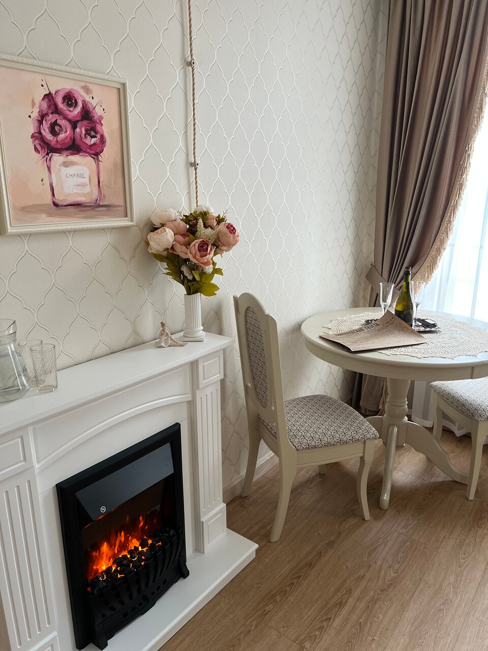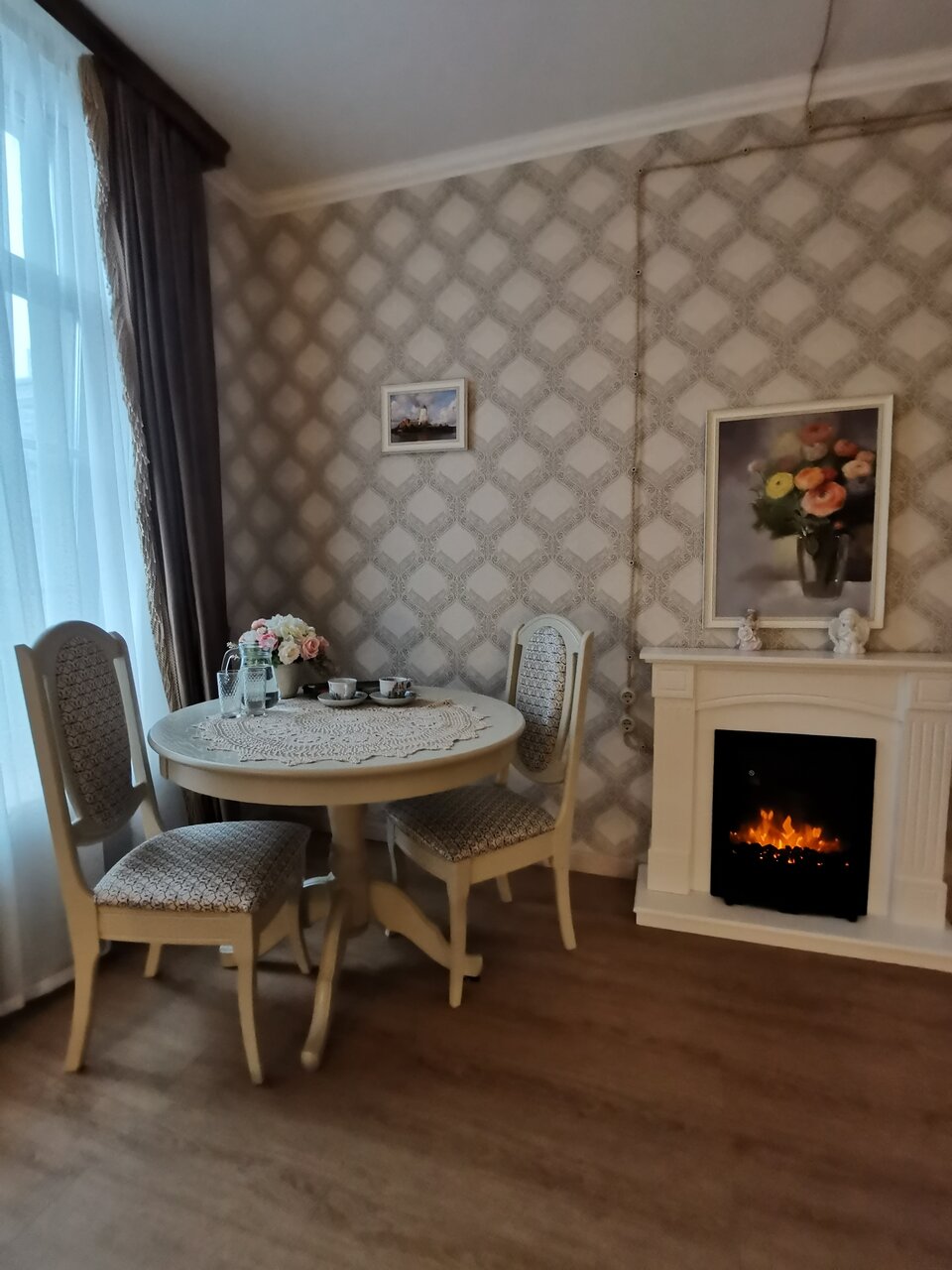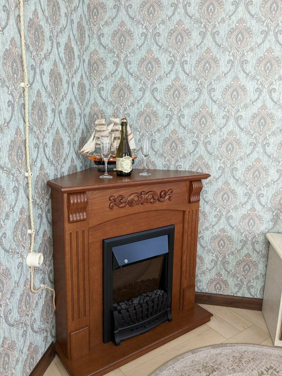 - Электрокамины и кресла-качалки в номерах.
