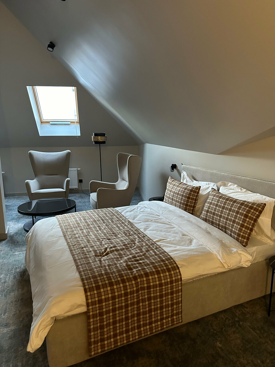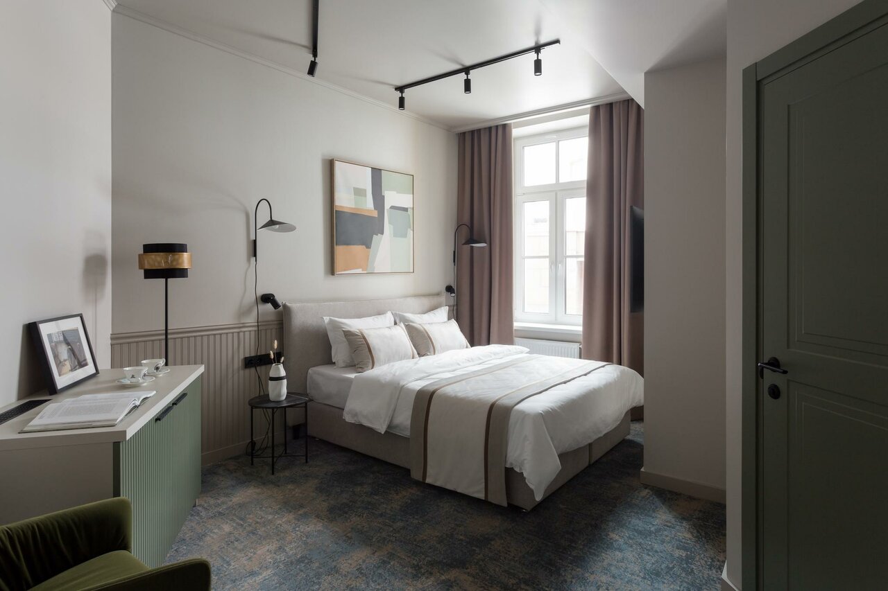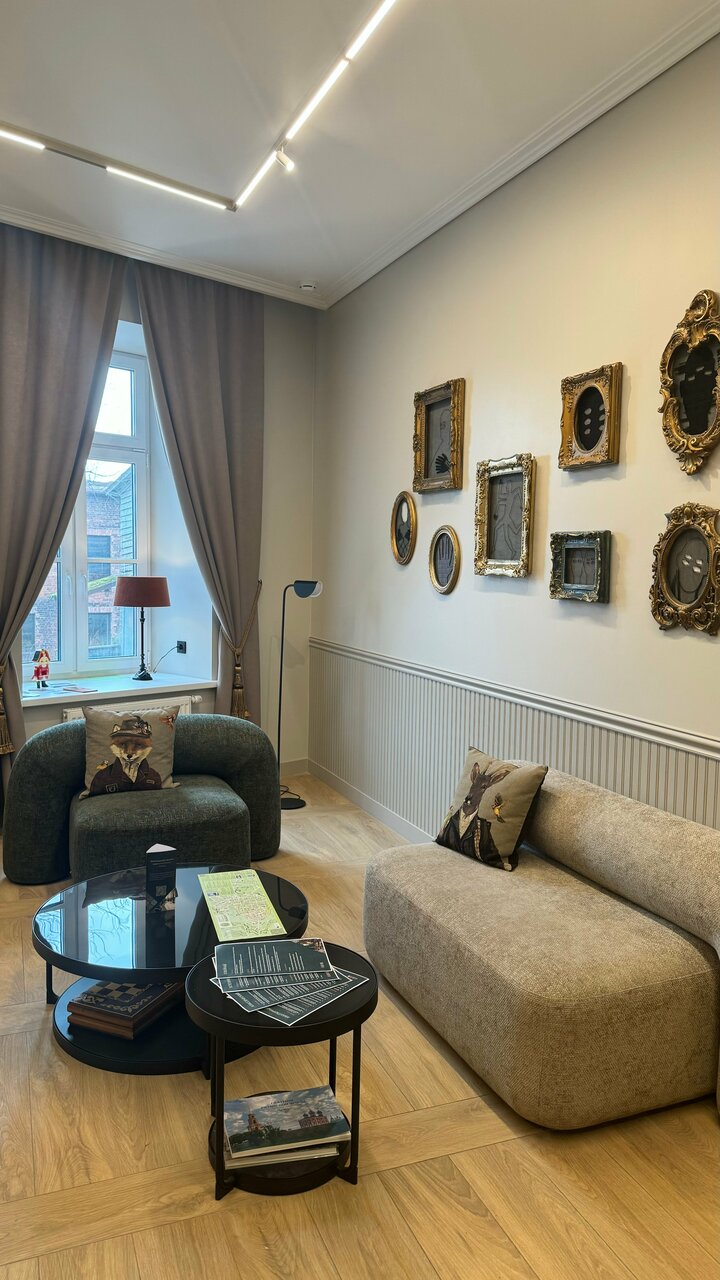 Отдыхали в данном отеле в номере стандарт. Прежде всего хочется отметить прекрасное расположение, все достопримечательности в шаговой доступности. Пока еще не работает ресторан для завтраков. Позавтракать можно в двух заведениях, с которыми у отеля есть соглашение, так же можно заказать завтрак в номер. Очень чистый и красивый отель, открылся совсем недавно. Номер нам достался на втором этаже с мансардными окнами, очень атмосферно Номер красивый, уютный, может, не очень большой, но нам на двоих было отлично (но даже с ребенком, было бы комфортно, в нашем номере был дополнительный диван, но я понимаю, что не во всех номерах есть диван — нужно уточнять). Так же в номере есть халаты, фен, чайник. Хочу выразить благодарность сотрудникам отеля, отзывчивые и приветливые. Спасибо за замечательный отдых. Если нам захочется остановиться в центре Выборга, то обязательно остановимся именно в этом отеле.