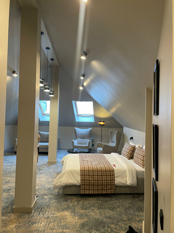 Отель- великолепен! Стильный интерьер выполнен со вкусом. Уютно, в меру просторно, тихо. Администраторы с рецепшен — приветливы и гостеприимны от всего сердца, заботливы и внимательны. Мы жили в мансардном номере. Окошки с видом на небо Очень удобная кровать, крутой телевизор и суперская сантехника (у душа есть удивительный режим подачи воды, неожиданный и очень приятный). Посещение Выборга оставило очень душевное впечатление. Если приедем ещё, то именно в этот отель. Выберем люкс, не сомневаясь. Такая атмосфера стоит этих денег, без сожалений. Процветания и всех благ отелю!!!
