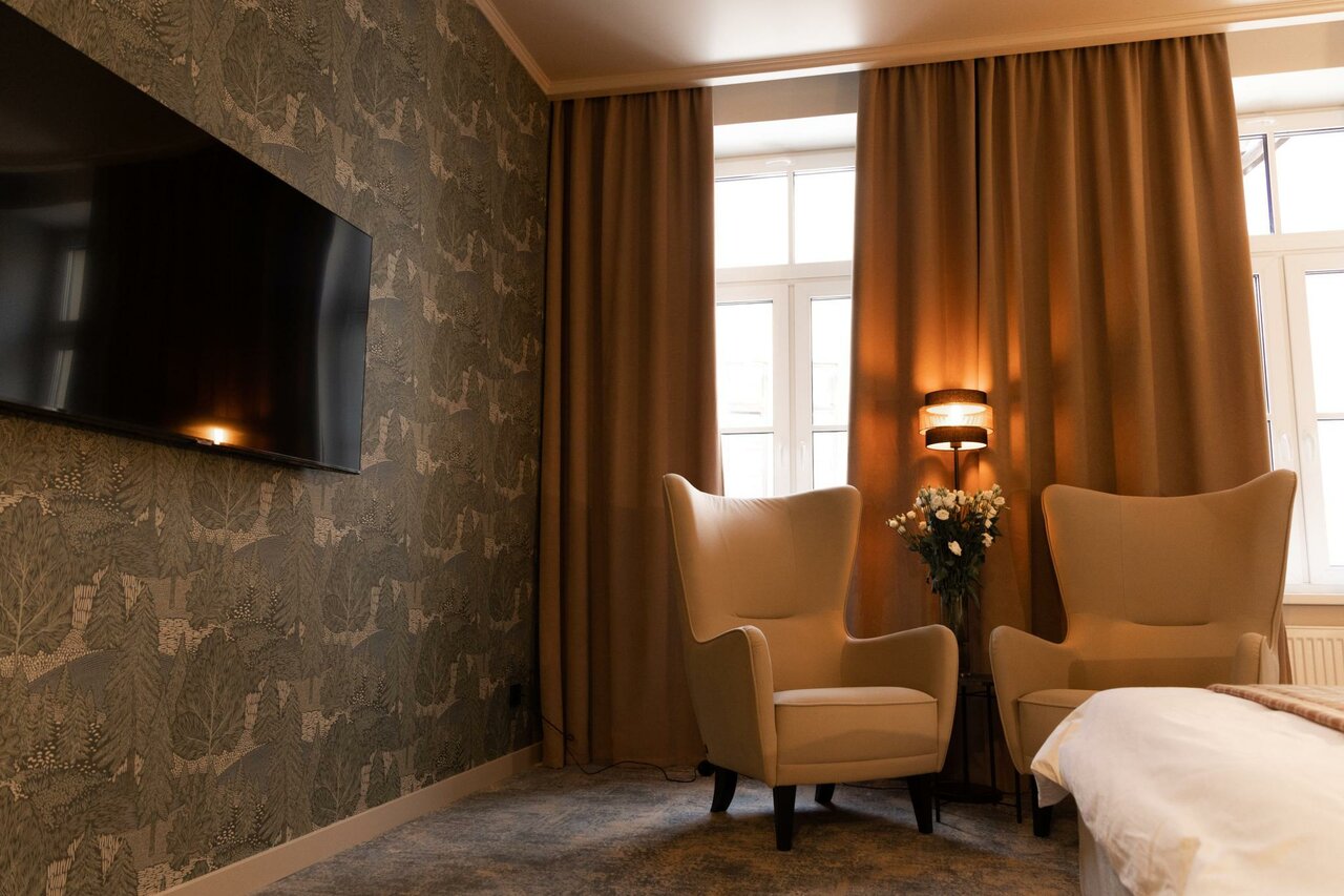Выбрали эту гостиницу, чтобы остановиться на сутки в Выборге. Если хотите хорошо отдохнуть после экскурсий и с комфортом провести своё время, Вам сюда;) Здание отреставрированно и прекрасно выглядит и внутри, и снаружи. Очень приятный дизайн номеровв спокойных и сочетающихся тонах. Внутри всё оборудование рабочее. Приятно удивила клиентоориентированность в виде предоставленных без предоплаты фена, бутылки геля для душа, бутылки шампуня, тапочек, халатов, чайного набора с шоколадом. На ресепшене Вам также предложат бесплатно набор из зубной щётки, зубной пасты, бритвы и мочалки. Можно с собой ничего не привозить, там всё дадут) Отдельный плюс за телевизор с доступом в интернет. Персонал очень вежливый и приветливый. В общем, рекомендую:)