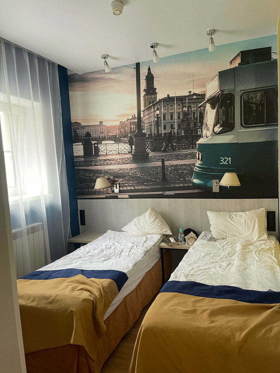 Гостиница находится в 40 минутах от исторического центра. Шли быстрым шагом. Рядом никаких достопримечательностей нет. Вид на трубы и жилые дома. Рядом продуктовые магазины. Номер был эконом, но с удобствами. Одно полотенце для ног нам забыли положить. В ванной просто дырка в полу, даже защитного бортика нет. Чтобы получить горячую воду надо достаточно долго её пролить (сначала идёт холодная). Коврика резинового тоже нет. Берите тапочки/сланцы для душа!!! Из плюсов: предлагают завтраки за 400 в кафе на первом этаже по системе шведский стол. На ресепшн можно бесплатно взять карту города с описанием всех достопримечательностей. Администраторы доброжелательные, улыбаются