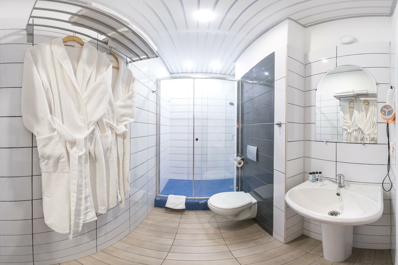 Гостиница очень хорошая. Рядом в шаговой доступности Пятёрочка и несколько кафе. Есть кафе и по соседству. В него очень удобно пройти по галерее не выходя на улицу. В кафе утром предлагают завтрак в формате шведского стола. Номер обставлен просто. Очень сильно впечатлили новые матрасы и подушки, необходимые туристу вечером после того, как он несколько часов гулял по старинным мостовым города и наслаждался видами и достопримечательностями. Минус только один. Рано утром (в 6 часов утра) душ принять не получилось, так как горячая вода в трубах остыла. Пришлось ‘пропускать’ воду и ждать появления горячей воды.