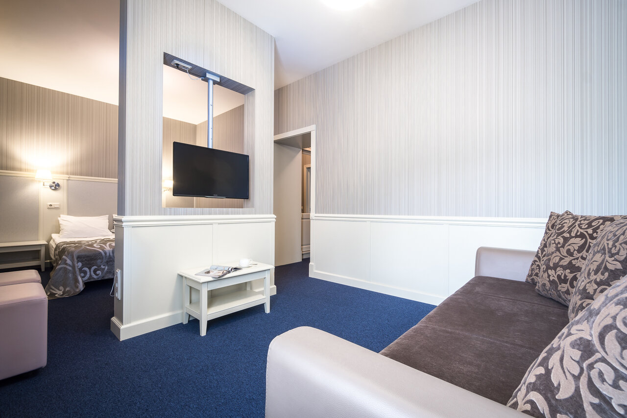 Проживали в этой уютной гостинице втроем с ребенком 6 лет 25.02.23-26.02.23. Нам очень понравилась гостиница, номер комфорт очень чистый и просторный. На завтрак был шведский стол, особенная благодарность девушкам, которые отвечали за завтрак. Все было вкусно, все блюда своевременно пополнялись) Гостиница находится чуть в отдалении от центра, но минут за 20 можно дойти до старого города по аллейкам парков. Рекомендую)
