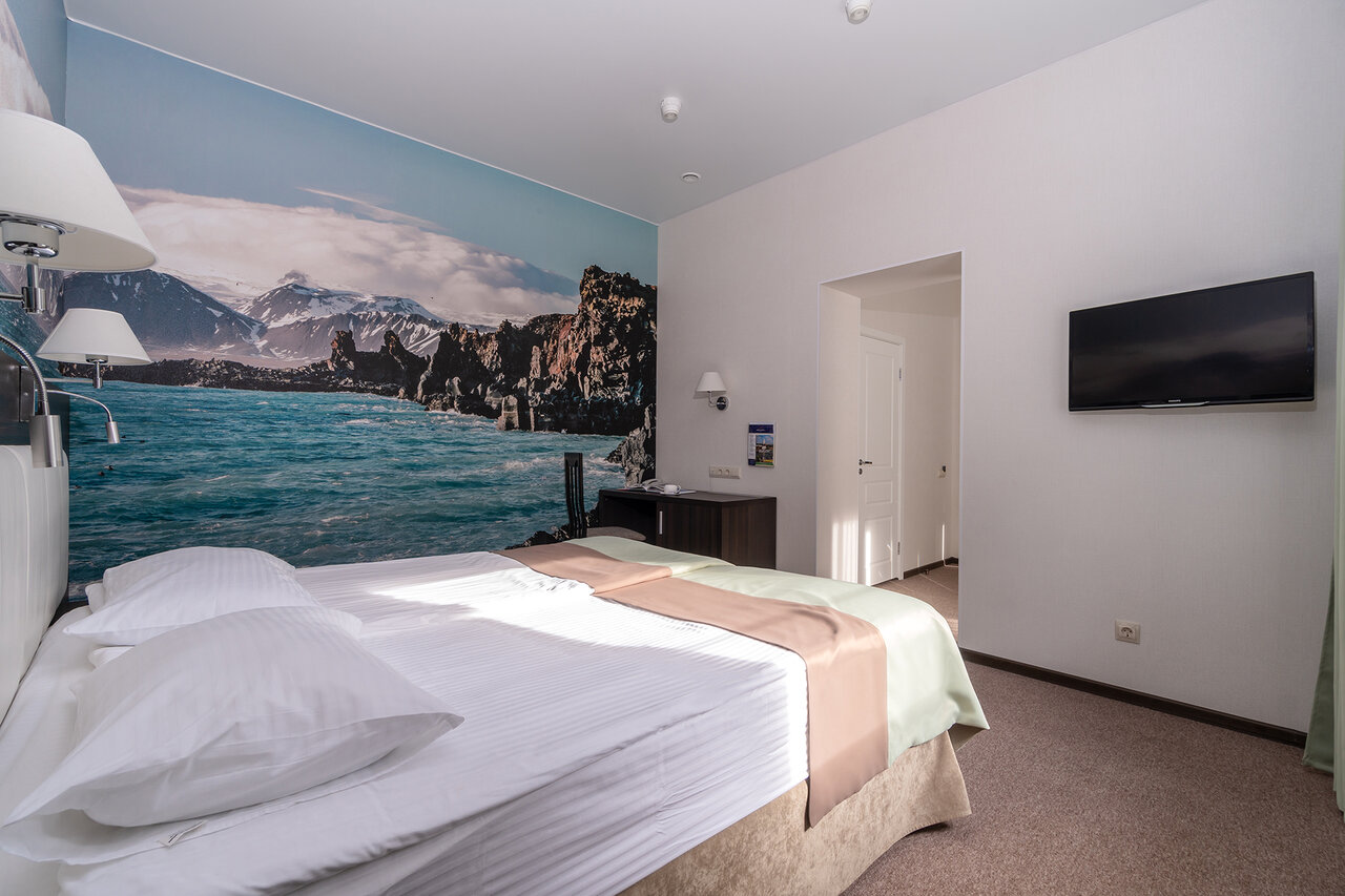 Из плюсов чистый номер, после ремонта, удобные матрасы, не проваливающиеся под телом. Подушки не высокие, что очень хорошо для такого матраса. Удобный душ со стеклянными дверцами, есть верёвочка для просушки белья. Брали номер комфорт. Много светильников. Есть куллер в холле. Из минусов, слышимость из окна и между номерами, в будние дни запах от автомастерской и у нас были полотенца для лица с грязным пятном. Это не пятно после стирки, а такое впечатление что их просто не стирали, было не приятно. А так как пришли с прогулки в 12 ночи, очень хотелось спать и уже не пошли к администратору. Вообщем в этот отель второй раз приезжать уже не хочется.