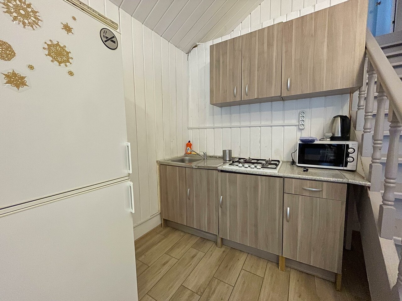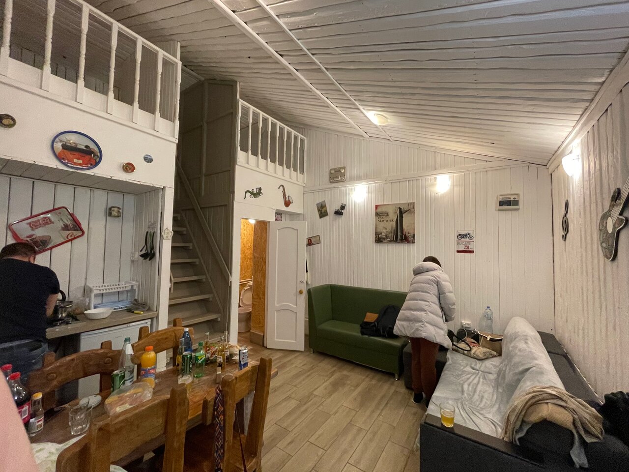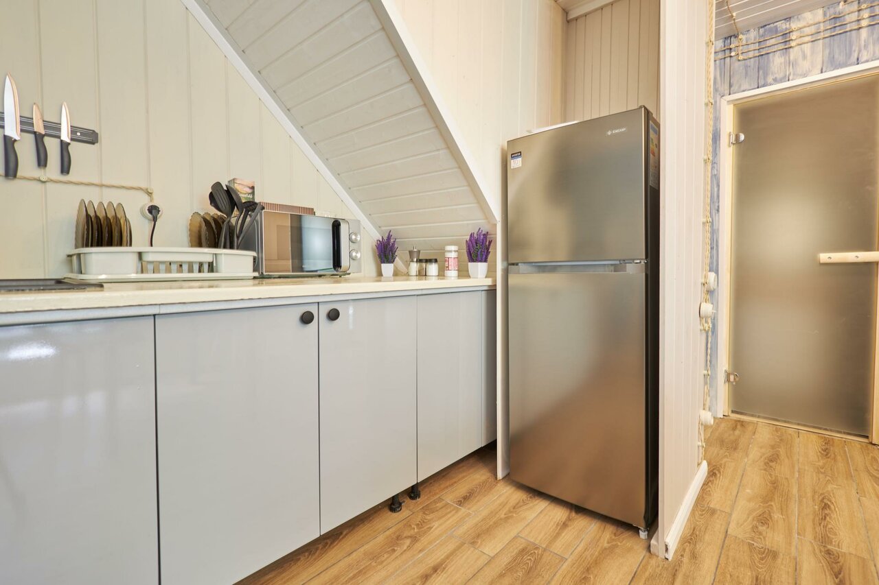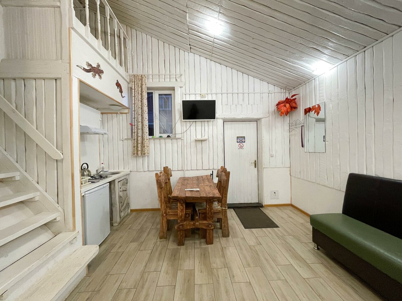 Крайне рекомендую данное заведение (но договор читайте очень внимательно). Персонал очень клиентооринтированный, штрафы за вс: немытая посуда, бардак- 1000р, задержка после выселения — 2000р за каждые 15 минут нахождения на территории, постельное бельё поменяют только за отдельную плату в 1000р независимо от срока проживания. Стиральной машины в номере нет, но за 300р можно постирать у администратора. В домике тесно, если топить, то на втором этаже невыносимо жарко, не топить, внизу холодно. Помещение выполнено в скандинавском стиле (как у бабушки в сарае). При морозах более 5 градусов тянет холодом со всех щелей. Из хорошего только молодая девушка администратор, к ней претензий нет.