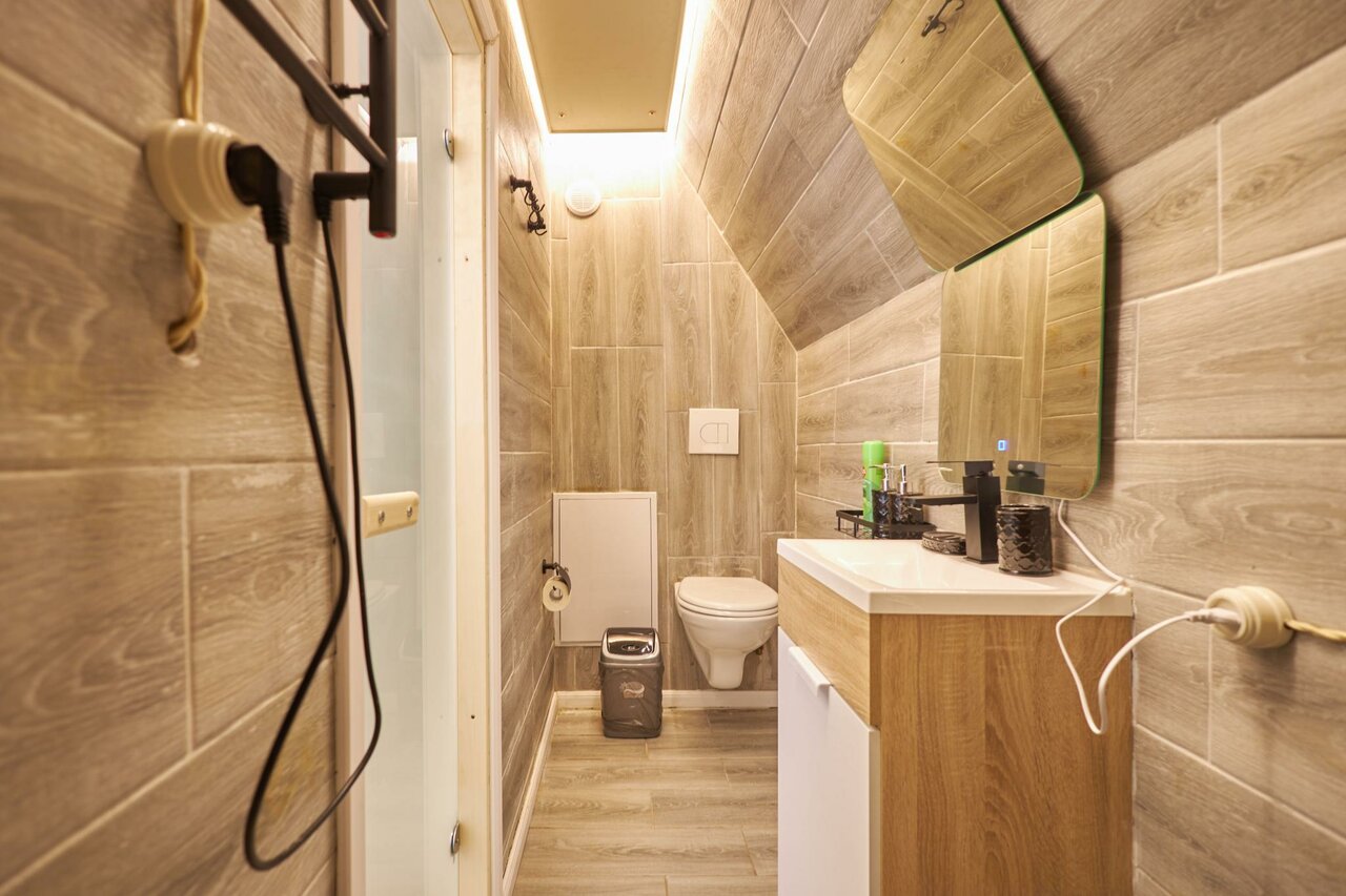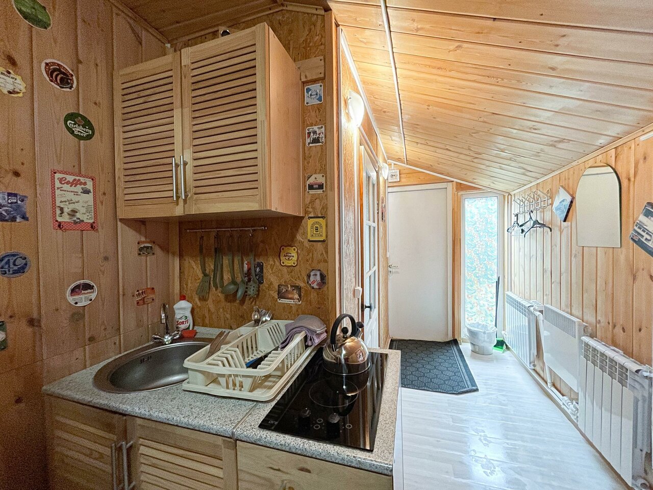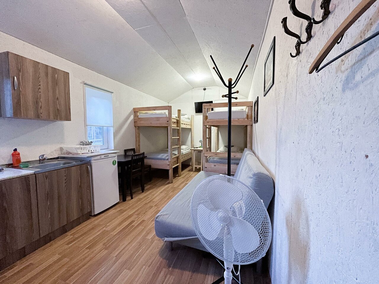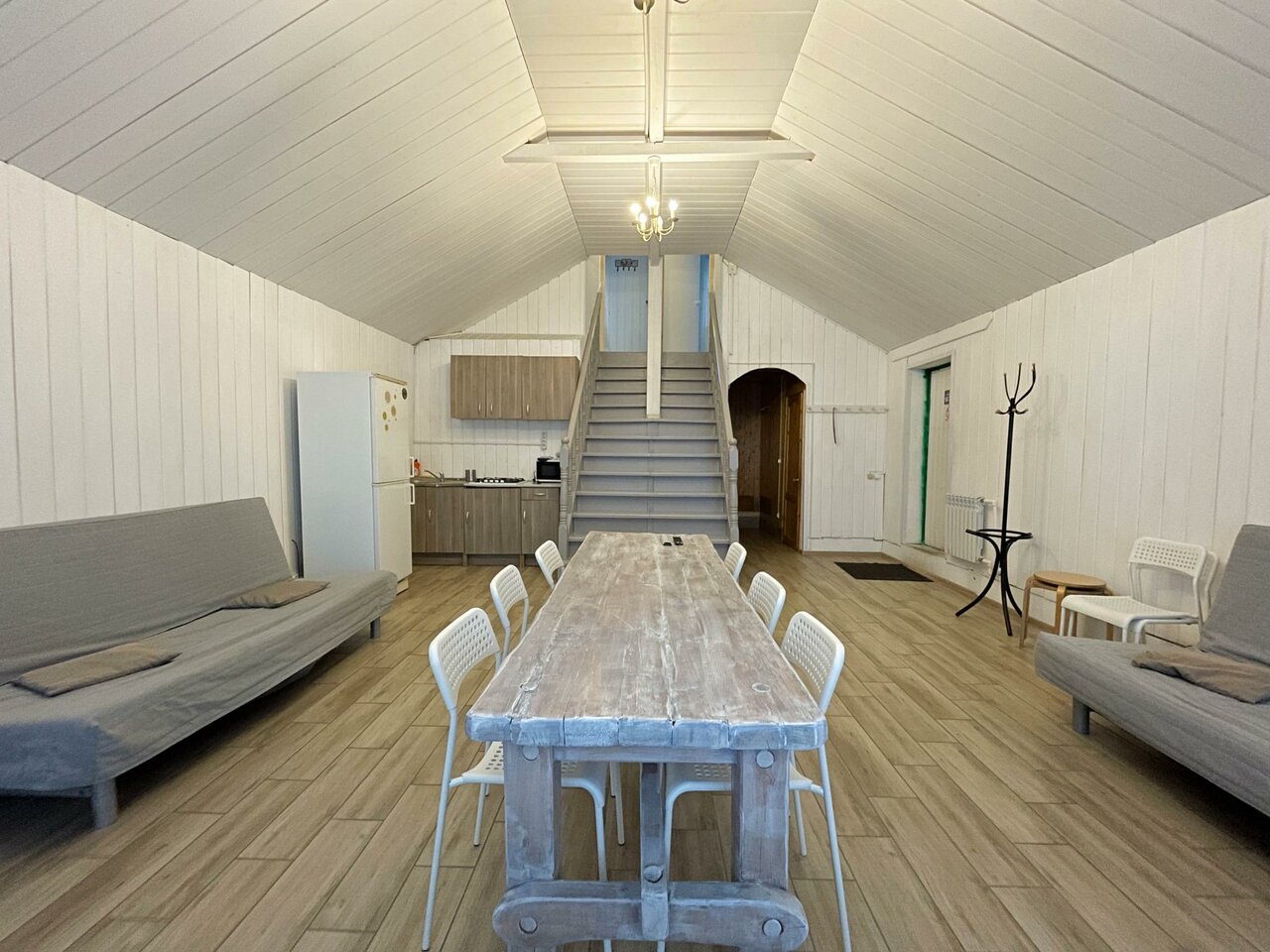 Крайне рекомендую данное заведение (но договор читайте очень внимательно). Персонал очень клиентооринтированный, штрафы за вс: немытая посуда, бардак- 1000р, задержка после выселения — 2000р за каждые 15 минут нахождения на территории, постельное бельё поменяют только за отдельную плату в 1000р независимо от срока проживания. Стиральной машины в номере нет, но за 300р можно постирать у администратора. В домике тесно, если топить, то на втором этаже невыносимо жарко, не топить, внизу холодно. Помещение выполнено в скандинавском стиле (как у бабушки в сарае). При морозах более 5 градусов тянет холодом со всех щелей. Из хорошего только молодая девушка администратор, к ней претензий нет.