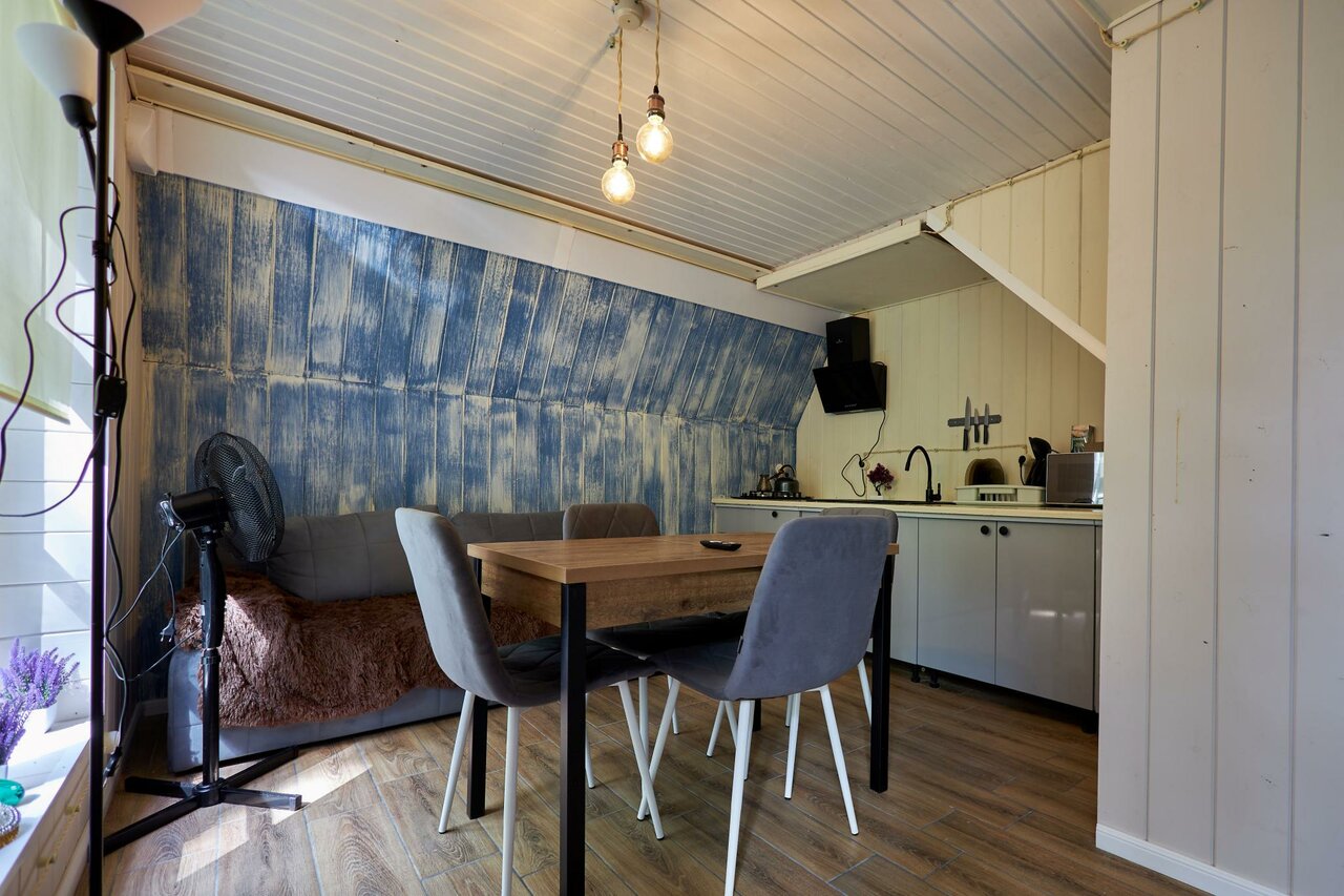 - Возможность приготовления еды (мангал, шампуры).; Наличие всех необходимых удобств (кухня, санузел).; Быстрое бронирование, даже ночью.; Тёплый пол в прохладное время.; Отзывчивый и любезный персонал (в некоторых отзывах).