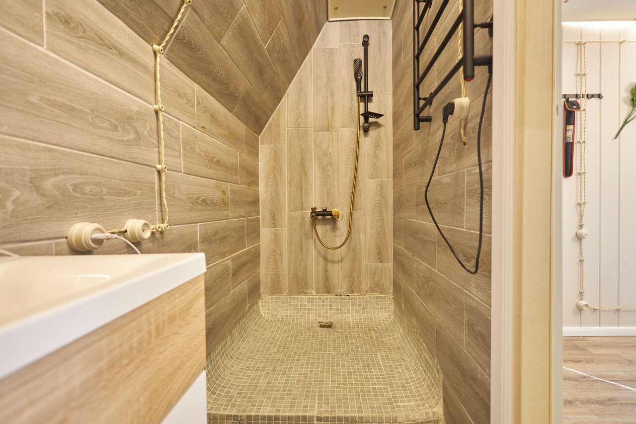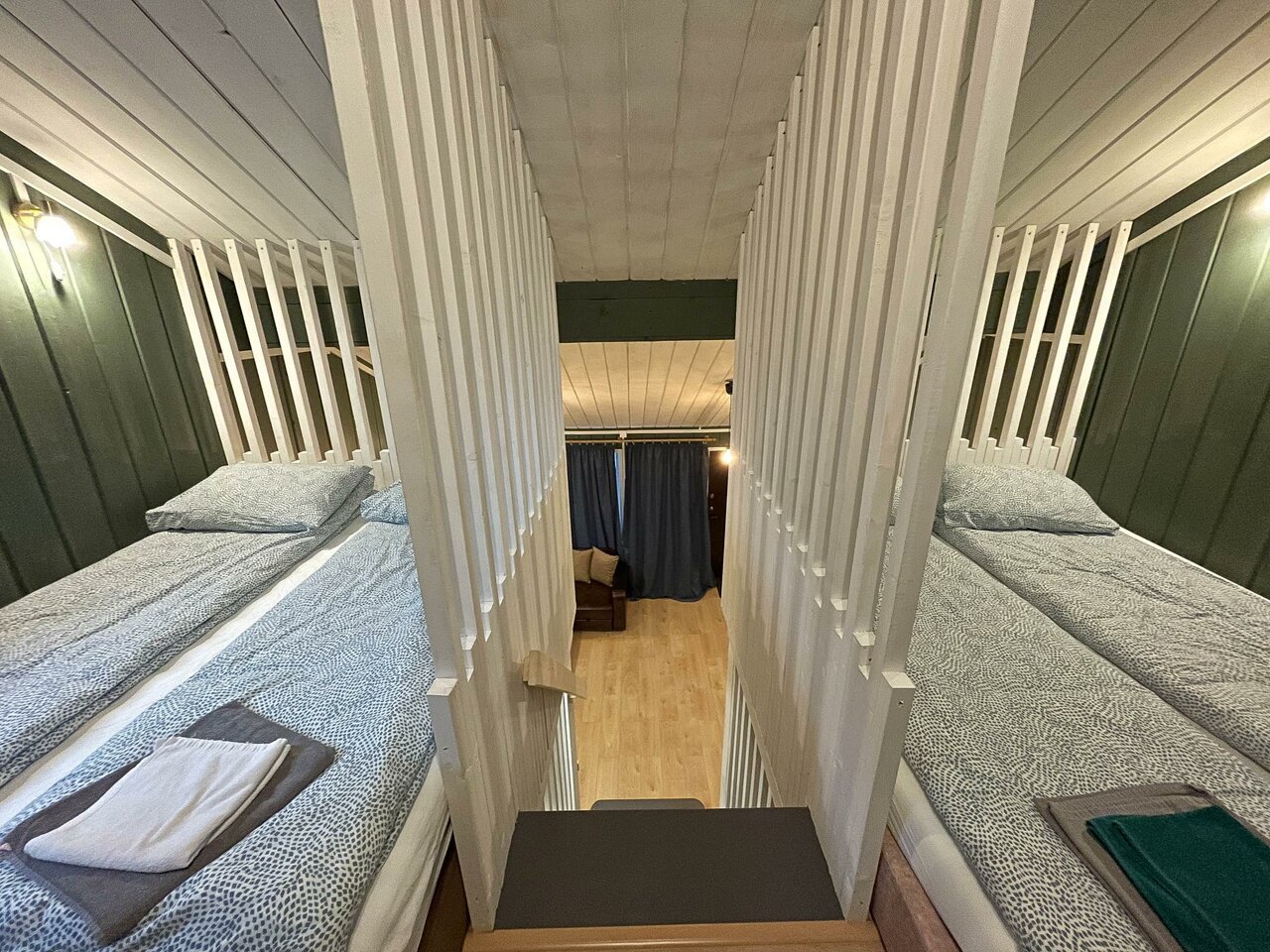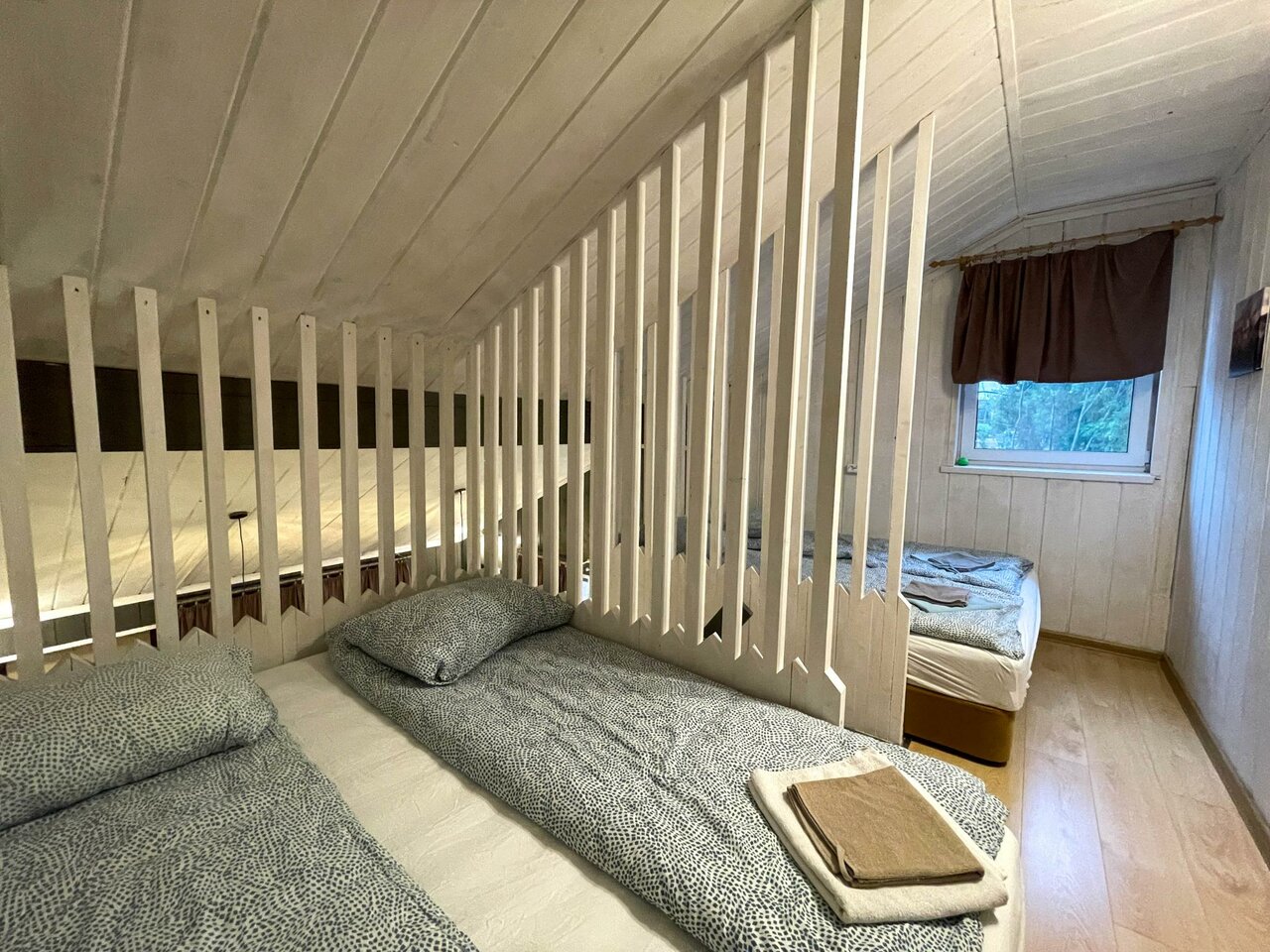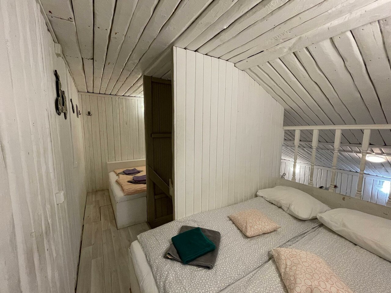 Большая часть домиков уютом и видом намного пожиже чем на фронт фото.. Никудышная звукоизоляция между номерами в домике… Первую ночь слушали таддикские разговоры…. Вентиляции в домиках нет ни в санузле ни в самом доме… Пол ледяной… Под крышей второго этажа невозможная духота… В санузле заплесневела стена от сырости… Рядом есть где погулять.. Замечательный вид на Выборг с сопок