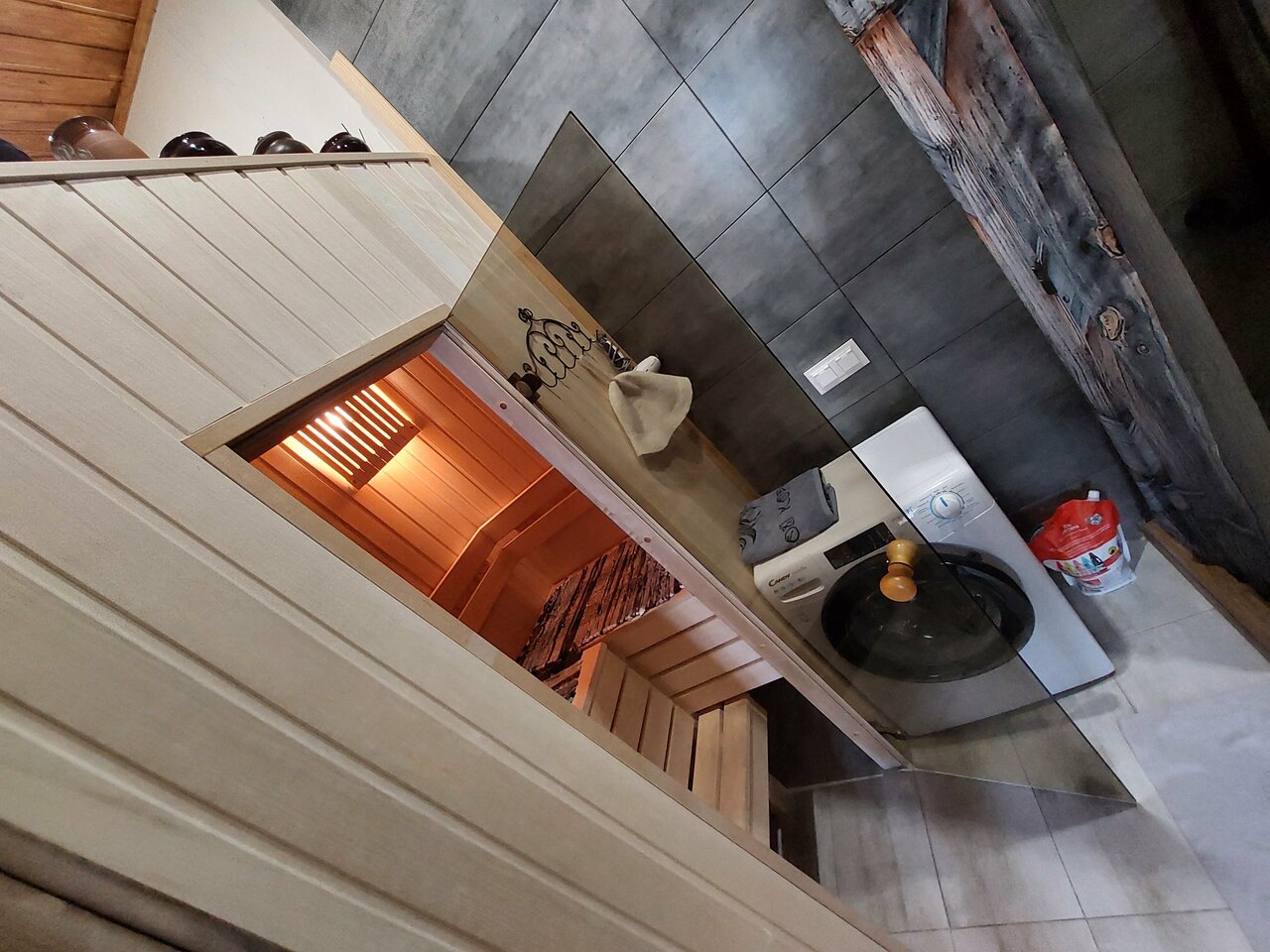 - Сауна небольшая (для двоих высоких людей может быть тесновато)