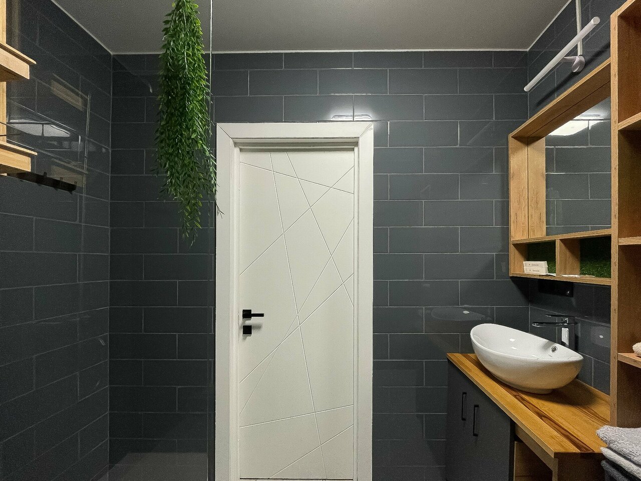 - Тёплые полы, хорошая ванная.