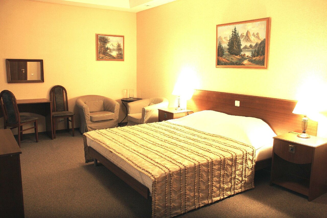 Уютные и просторные номера с большой кроватью ( или двумя раздельными кроватями) и диваном с видом на город. Собственная ванная комната с ванной и душем. Халаты, тапочки, гигиенические принадлежности включены в стоимость номера. Идеально для семейн