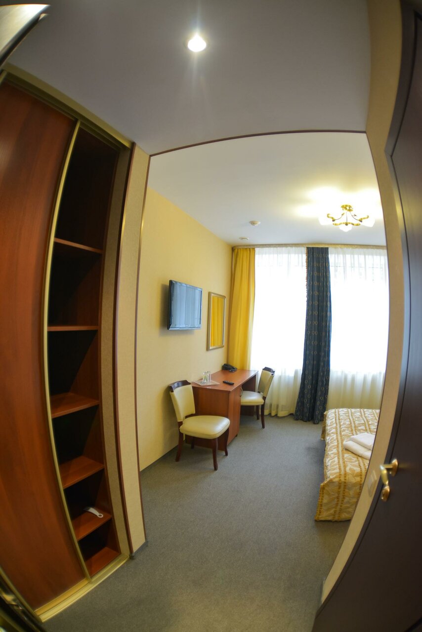 Отель у жд вокзала, расположен удобно. Номер понравился, двухместный бронировали. Шкаф, стол, тумба, телевизор, фен, набор:мыло шампунь гель. Шведский стол на 5+!!!! Приятный персонал. Спасибо!