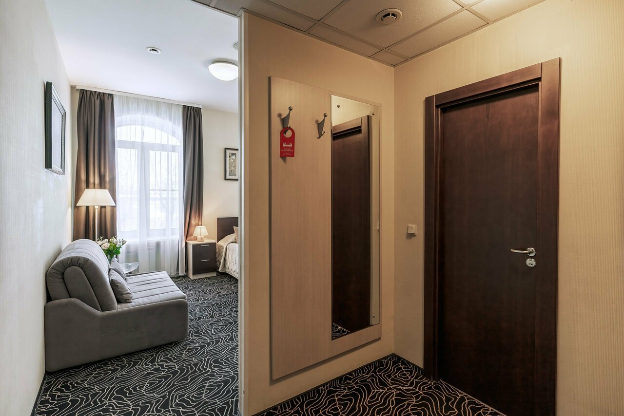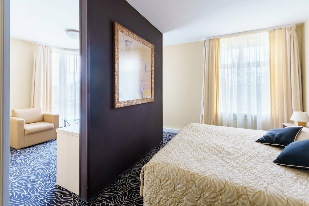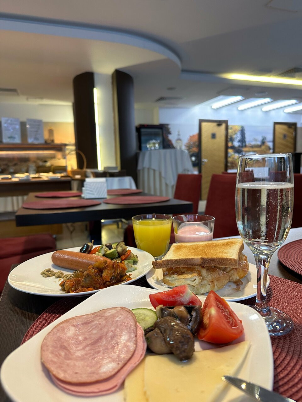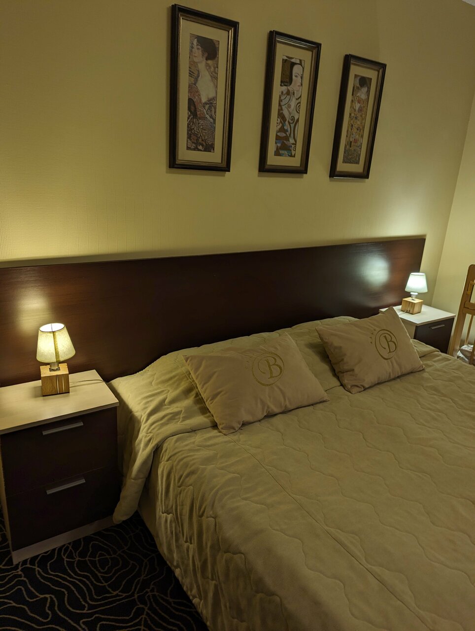Отличные завтраки — шампанское вкусное, кашка молочная, огромный выбор блюд на любой вкус. Парковкой пользовались на брусчатке перед гостиницей. Много свободных мест, удобный подъезд, регулируемый светофором переход к гостинице. Удачное расположение, в шаговой доступности от множества достопримечательностей города. Номер стандарт: - шумоизоляция очень низкая. Слышно и коридор, и кран в соседнем номере, и прочие бытовые звуки; - в ванне держатели полотенец и туалетной бумаги стремились упасть на пол; - утром не было горячей воды около часа в самый нужный момент; - белье, полотенца, номер в целом чистые. Лифт с панарамным видом на город с верхних этажей, рекомендую подняться.