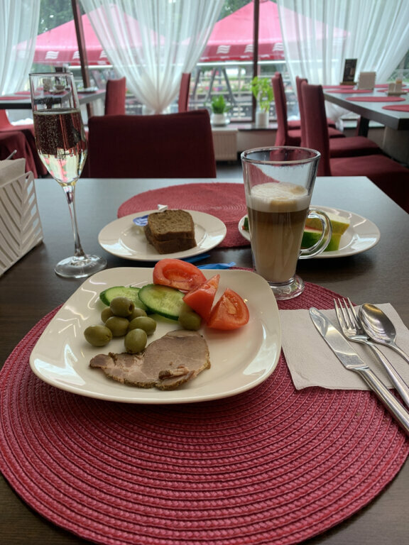 Отличная гостиница, остановиться на выходных просто замечательно. Удобно расположена в самом центре — Центрее некуда) Хороший шведский стол европейского уровня, приветственное Шампанское вечером в ресторане и для желающих утром на завтраке. Чисто, уютно, всё необходимое есть, в номере холодильник, Wi-Fi нормальный, на этаже есть кулер … На площади прямо перед входом — большая бесплатная парковка. Мы с женой с удовольствием провели время в Выборге и не пожалели, что выбрали эту гостиницу. Рекомендую!