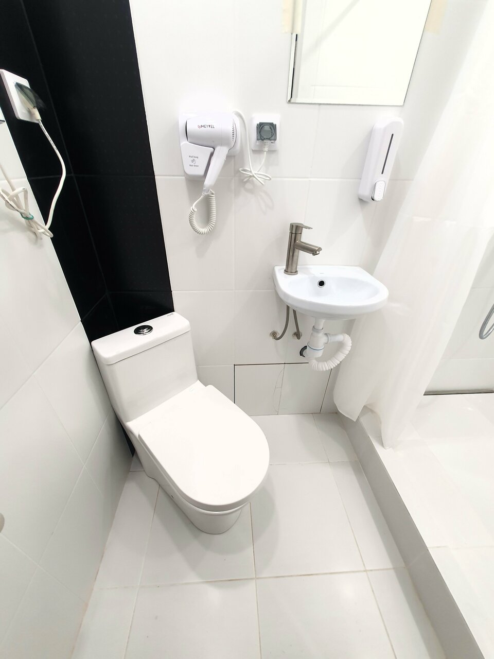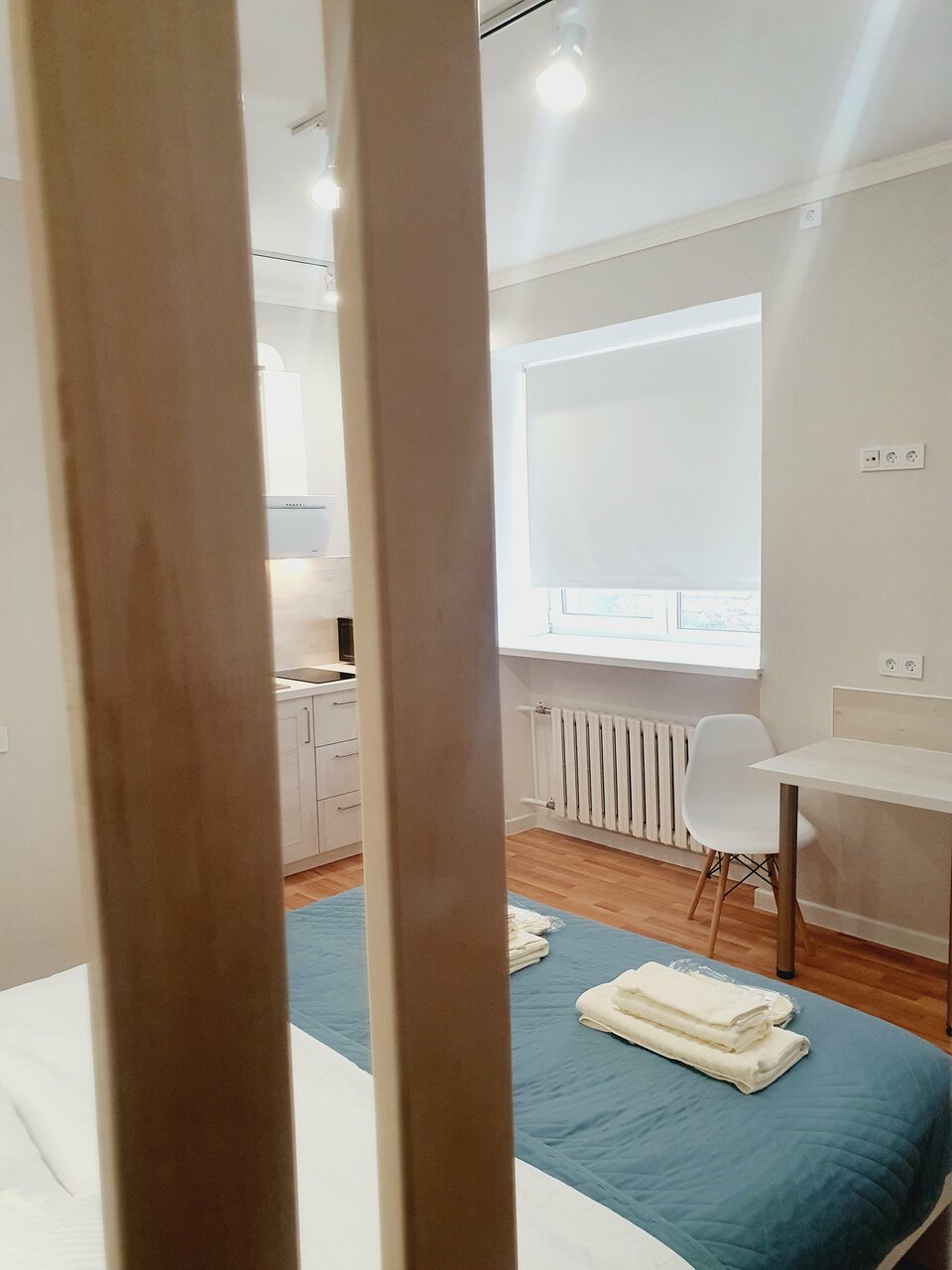 Отличная уютная студия со всем необходимым. Все аккуратно убрано, постельное белье и полотенца чистые. В наличии одноразовые тапочки и зубные щетки с пастой, приятный пустячок от хозяев отеля. Фен работает, душ в порядке. Есть мини бар, если захотелось попить и шоколад к чаю)