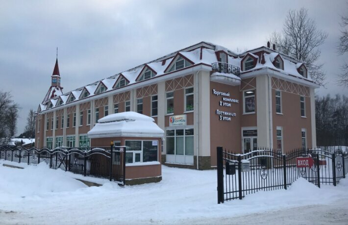 Довольно современный ТЦ. Раньше здесь была пекарня. Много лет заброшенная. Спасибо инвесторам. Построили Торговый Центр. Он немного в стороне, поэтому не особо популярен. Здесь и кафе Оредеж, и мфц. На 2 этаже Агентство недвижимости, развивающие студии для детей. На 3 этаже — гостиница. Часы на башенке не работают. Светодиодная доска с бегущей строкой, тоже. В общем, довести бы внешний вид до ума… И парковку нормальную сделать. А не просто ‘место справа от здания’. Полноценную, а не так… В лужах машину оставлять. А в общем — интересный ТЦ.