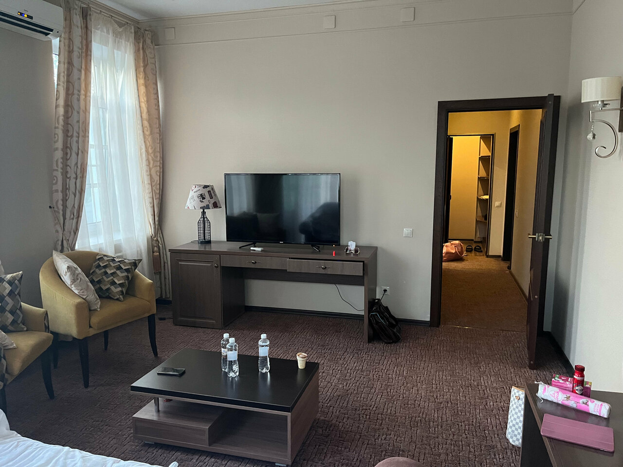 В номере чисто, уютно. Есть парковка, завтрак. Есть ресторан, но на обед не попал- спецобслуживание мероприятия. В целом положительно — рекомендую.