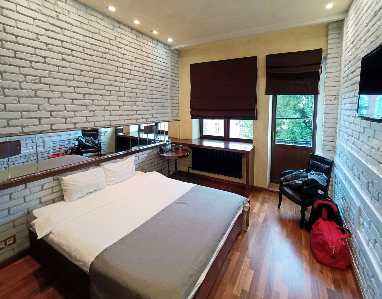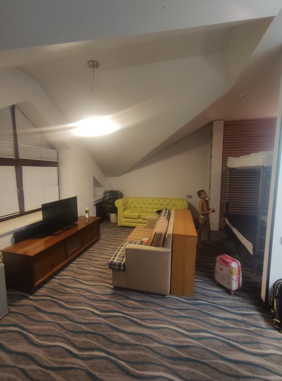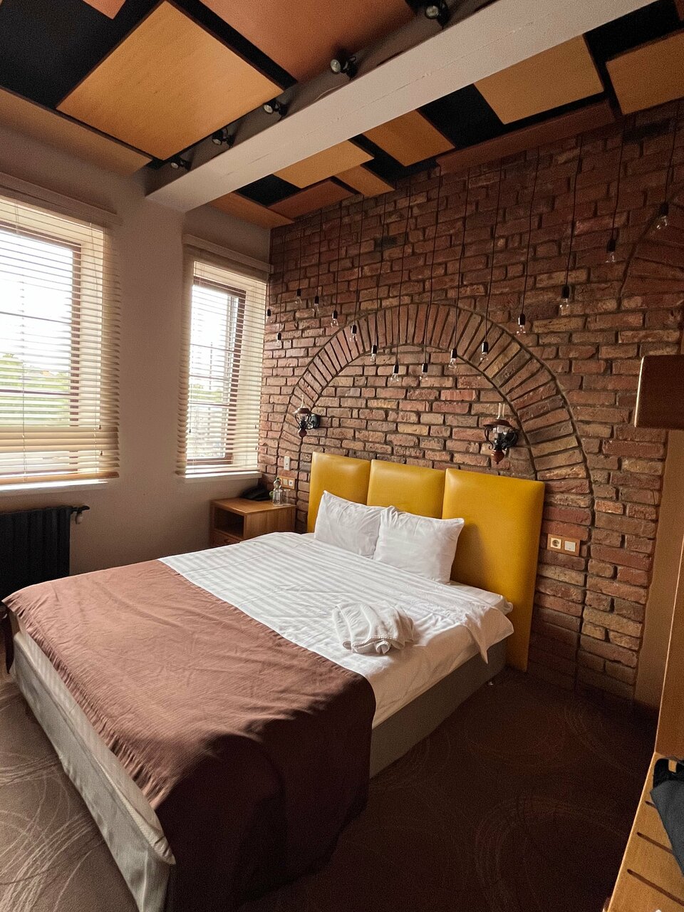 Гостиница очень понравилась, зацепил стиль и дизайн. Вежливый персонал, чистые уютные номера. Были в номере делюкс. Завтраки скромные но вкусные. Расстроило только что ресторан работал исключительно на завтраки, большой облом был, за два дня ни поужинать ни пообедать. Шикарная кровать в номере. Тёплый и уютный. Есть холодильник и большая ванна. Всё для семейного отдыха с детьми идеально. Кресло яйцо и книги на полке, да и вообще по всей гостиницы отдельное спасибо. Даже есть библиотека. Замечательно отдохнули, было бы больше времени, с радостью там бы прожила месяц.