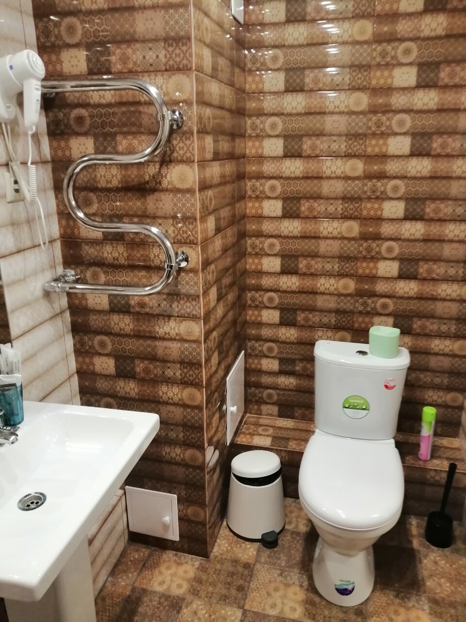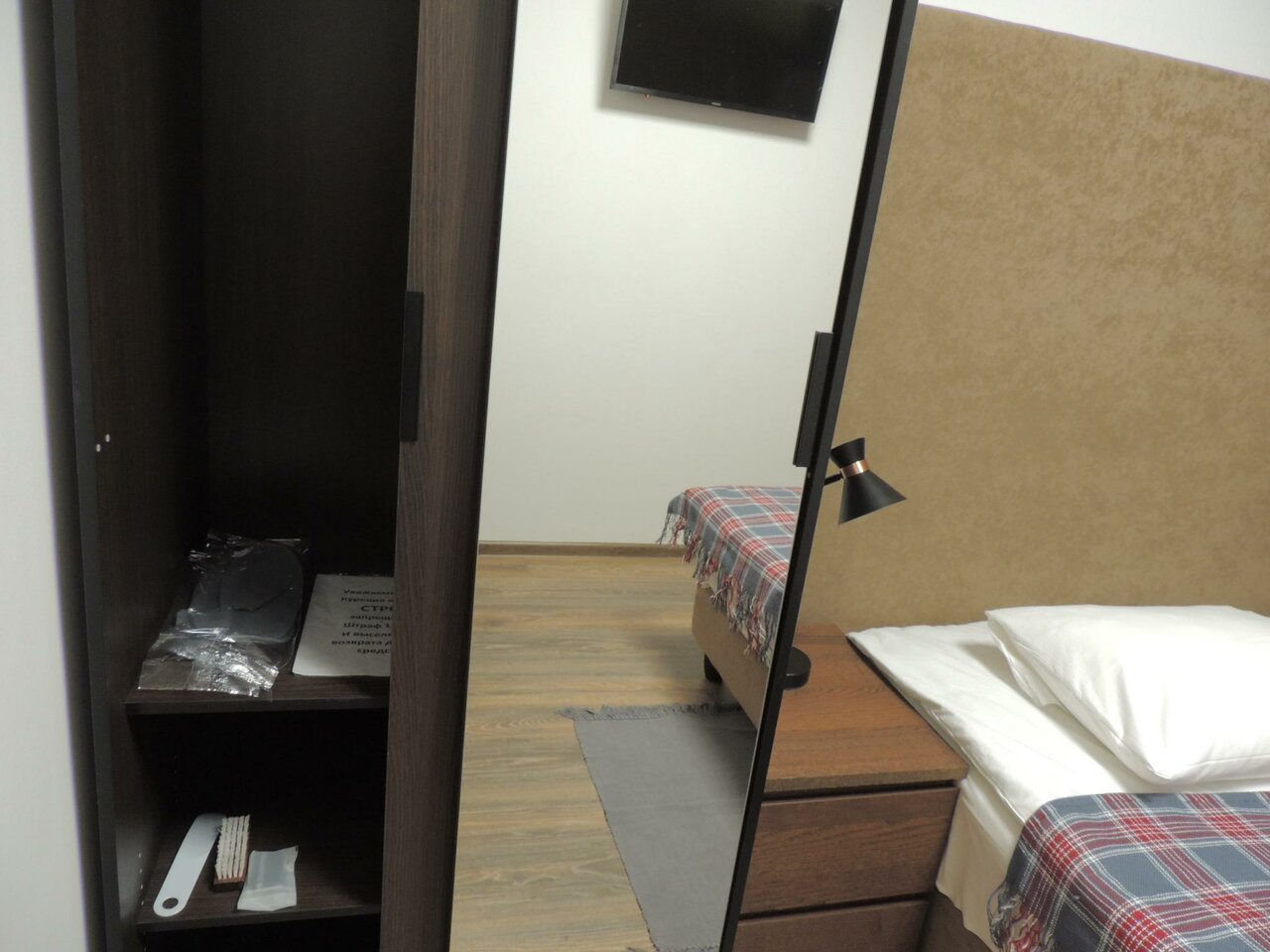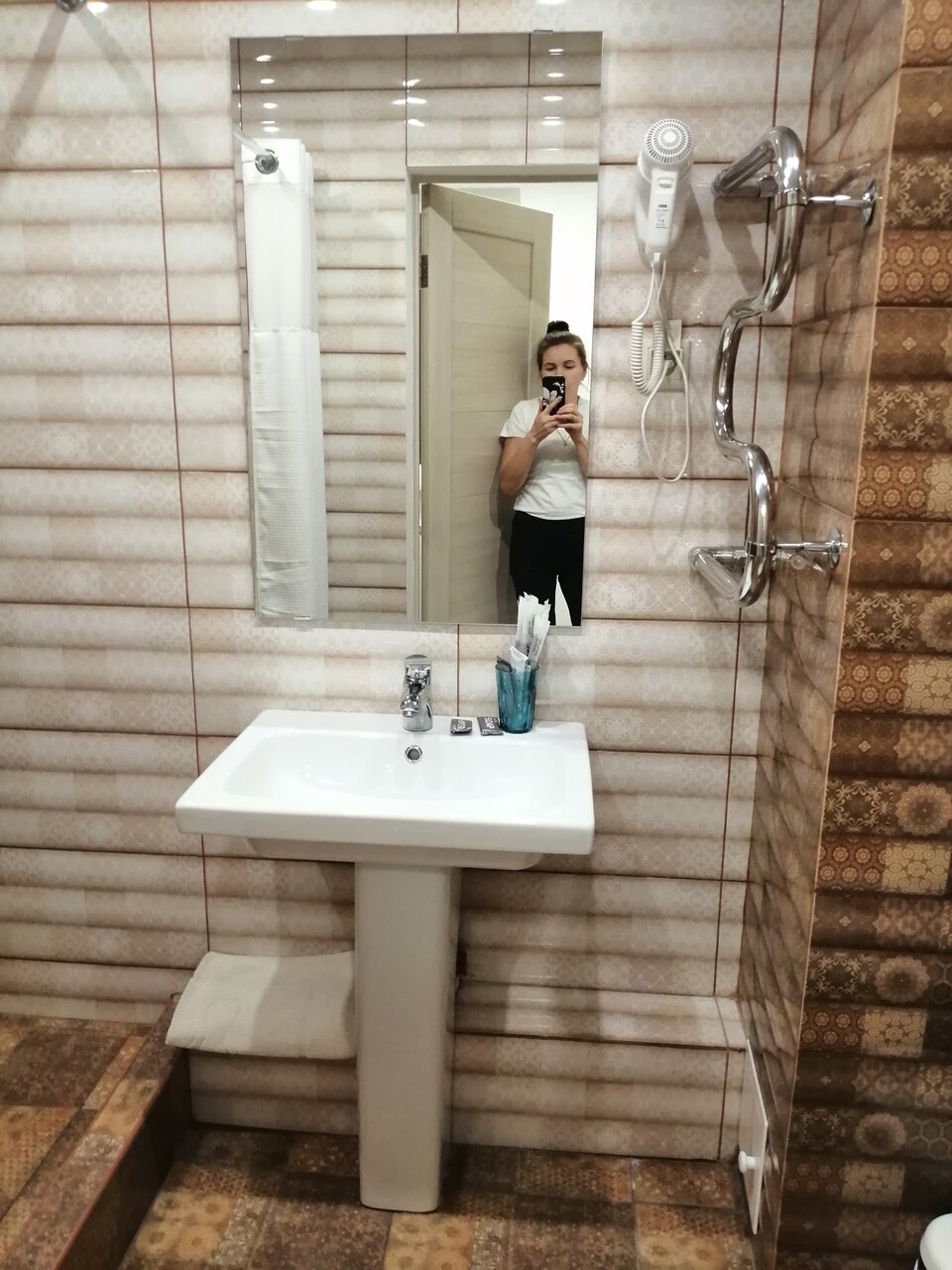Бюджетная гостиница ,чтоб сэкономить,так что к мебели и сантехники без претензий,в номере ждали нас халаты,тапочки,,полотенца,шампуни и даже зубные щетки,но вот слышимость оставляет желать лучшего,матрасы неудобные,в столовой скудный ассортимент,но перекусить можно,персонал приветливый,переночевать сойдёт