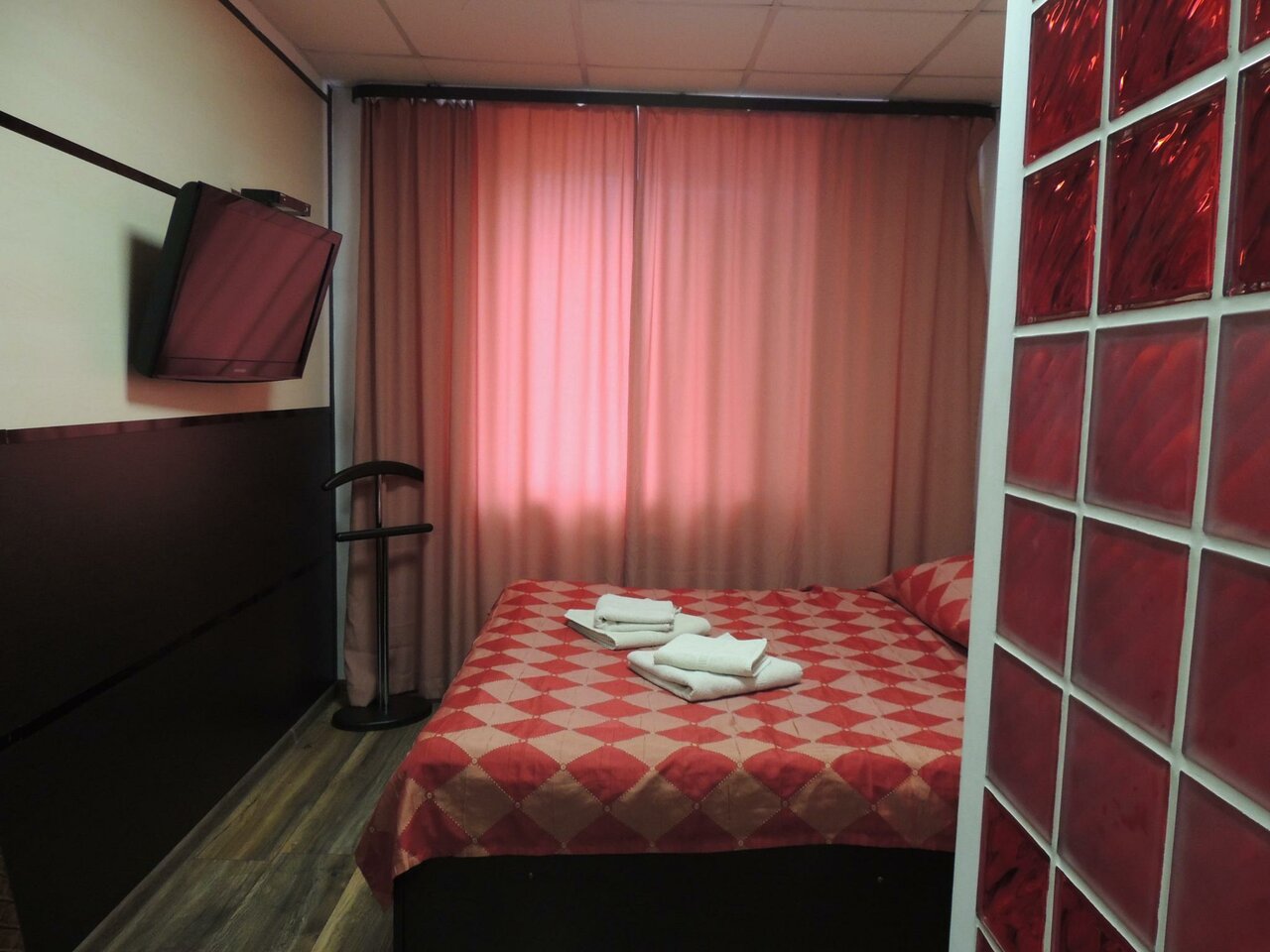 Двухместный номер без окна. В номере располагается двуспальная кровать, мини холодильник, телевизор, шкаф.Час 1500р ( минимум 2 часа)Ночной тариф ( с 22:00- 10:00) - 3000 руб