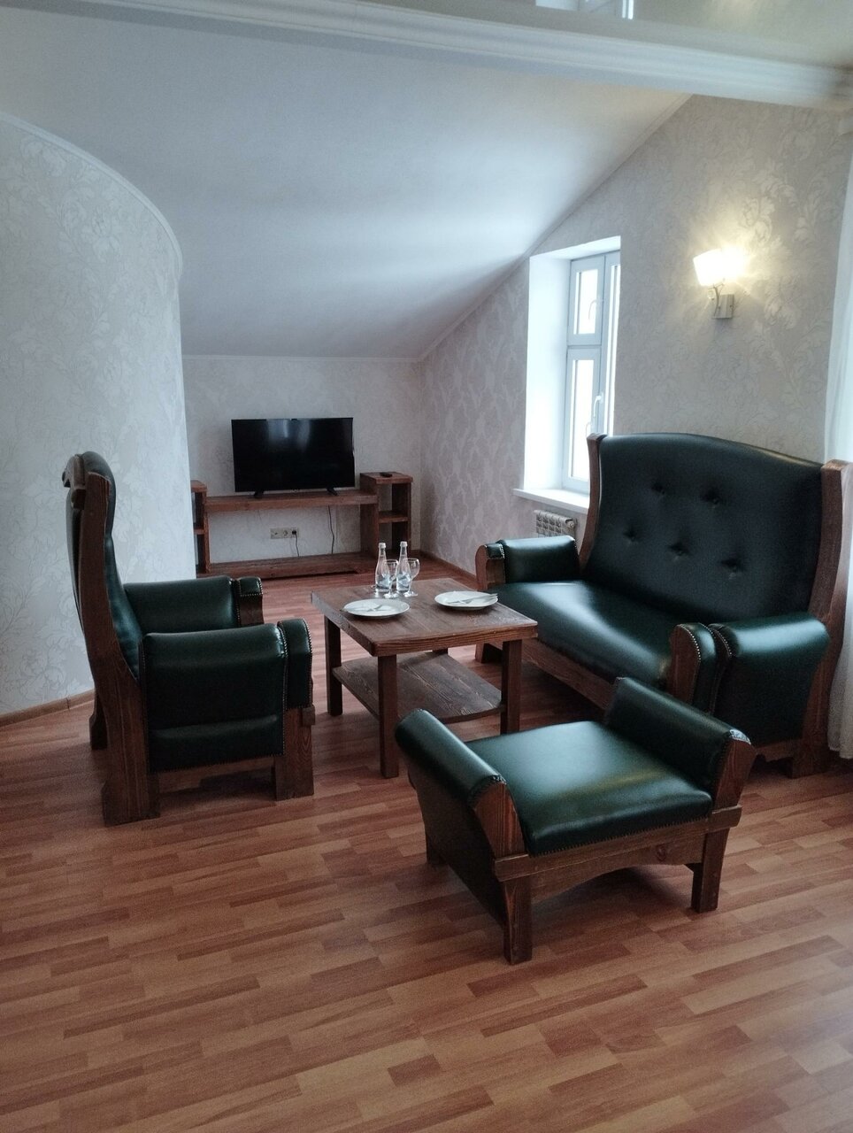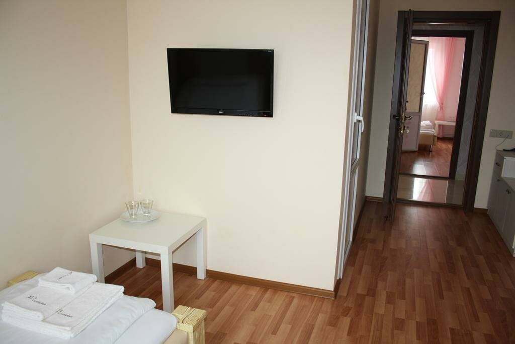 Гостиница предлагает недорогие номера (от 2000 ₽ за ночь) с удобствами: санузел, телевизор, интернет, мини-бар, фен, халаты и тапочки. В некоторых номерах есть кухонный уголок.