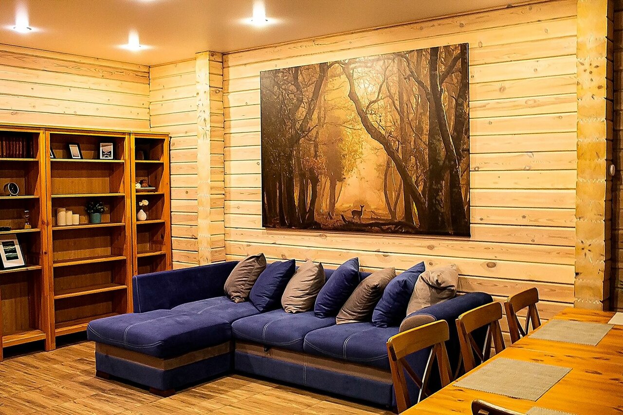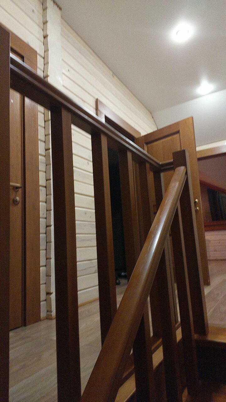 Очень теплый деревянный дом. Теплый пол на первом этаже. Все бегали босиком. Мебель и белье новенькое. Дерево даже в кухонной столешнице. Только плита плохо управляется: или жжет на 9 или 5 — нюансов нет.)) жаль дворика нет, дети все на дорогу выбегали..