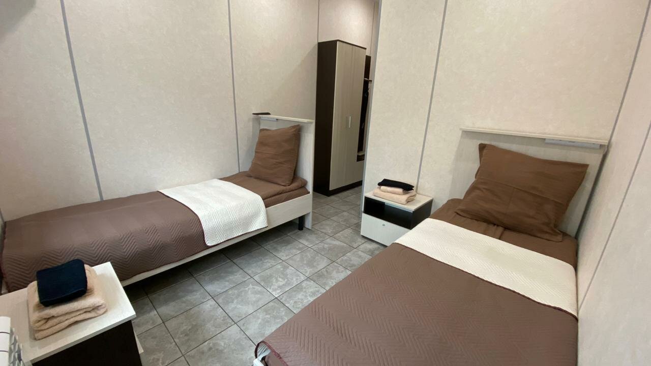 Двухместный номер с двумя односпальными кроватями и санузлом.-Две односпальные кровати;-Душ;-Туалет;-Шкаф;-Две тумбочки;-Телевизор;-Фен;-Wi-Fi