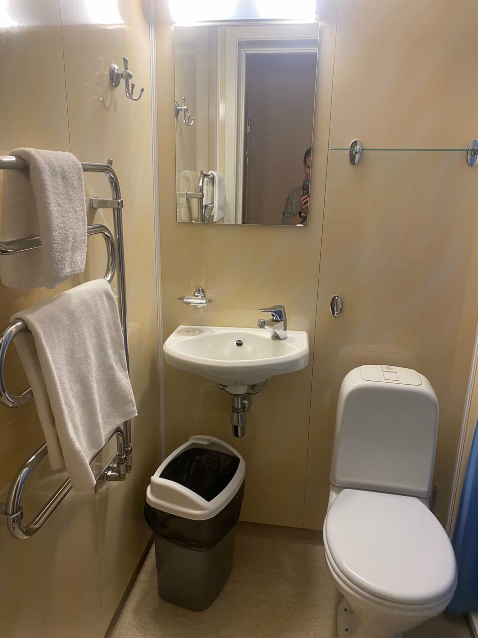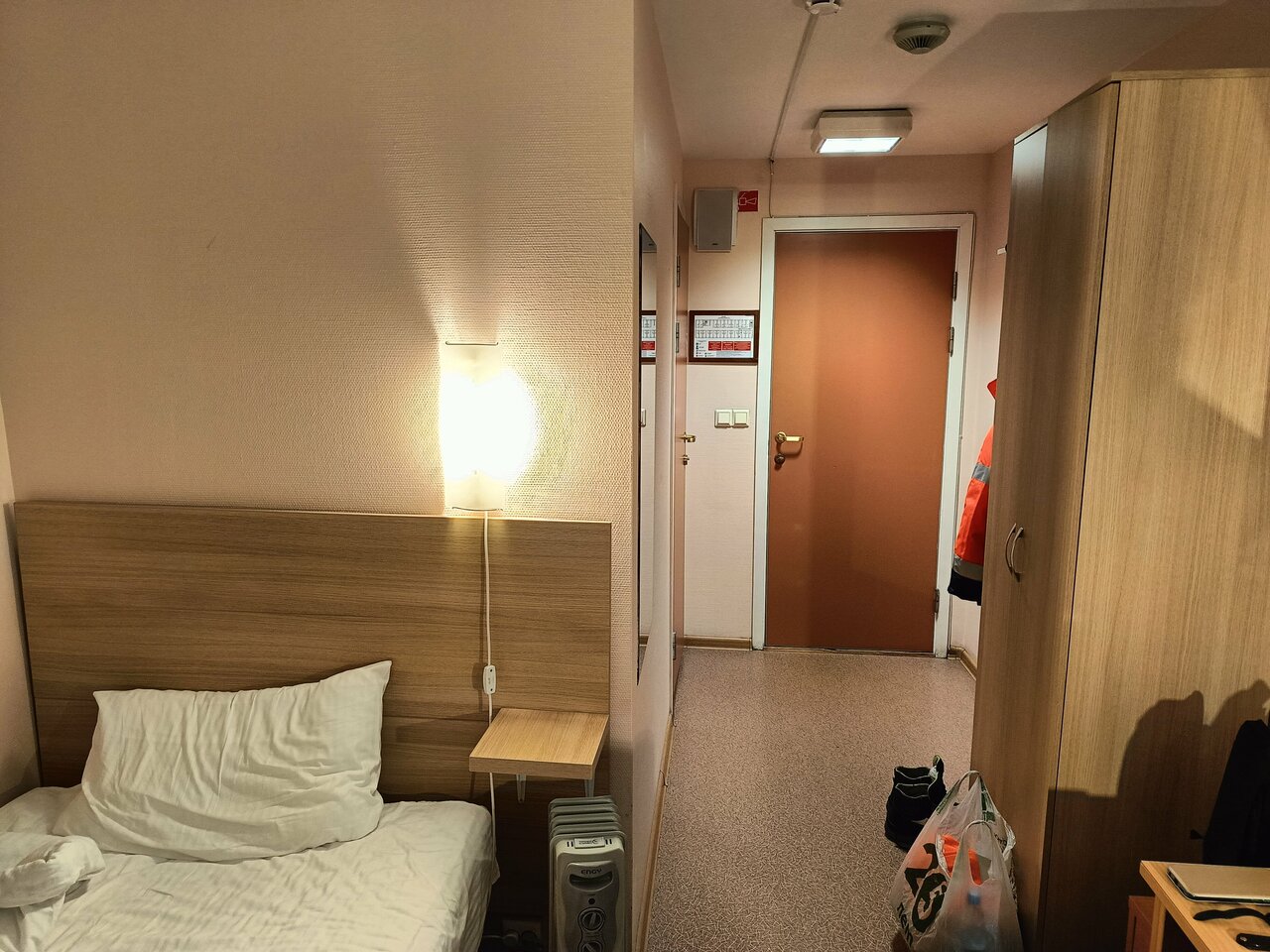 Одноместный номер — чистый, хорошая постель, есть чайник и кружка для чая, маленький холодильник. Как правило, в таком случае в номере подают питьевую воду и чай/кофе, но здесь этого нет, также как нет салфеток, фена, по запросу на всю гостиницу 2 фена очень слабых (( туалет и душ чистые, посторонних запахов нет. Завтрак — шведский стол, еда отличная- сырники, блины, омлет, сосиски вкусные, остальное не пробовала, но есть минус - персонал слишком заметен, кофемашина плохая, не предусматривает самообслуживания, не вовремя пополняют блюда, плохо следят за подогревом блюд, несвоевременно пополняют столовые приборы