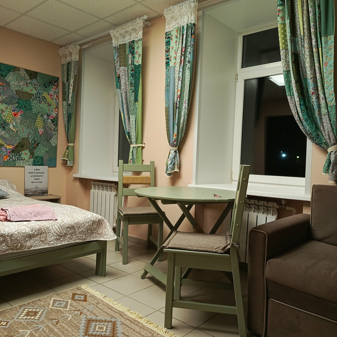 Отличное место, милейшее и тихое. Видно, что хозяева очень стараются для уюта и домашней атмосферы отеля. Завязочки на шторах, лоскутные панно и прочие детали интерьеров, оформленные с душой. Идеальная чистота везде, белье хрустящее, большая двуспальная кровать с мягким матрасом и подушками. Номер у меня был очень просторный. Свой туалет, чистый, с личными одноразовыми принадлежностями. Администратор (или хозяин) очень доброжелательный и приятный, встречал меня на улице перед заселением! Еще на первом этаже есть кролик и котёнок) Очень понравилось, если ещё буду останавливаться на ночь в Зарайске, то обязательно там)