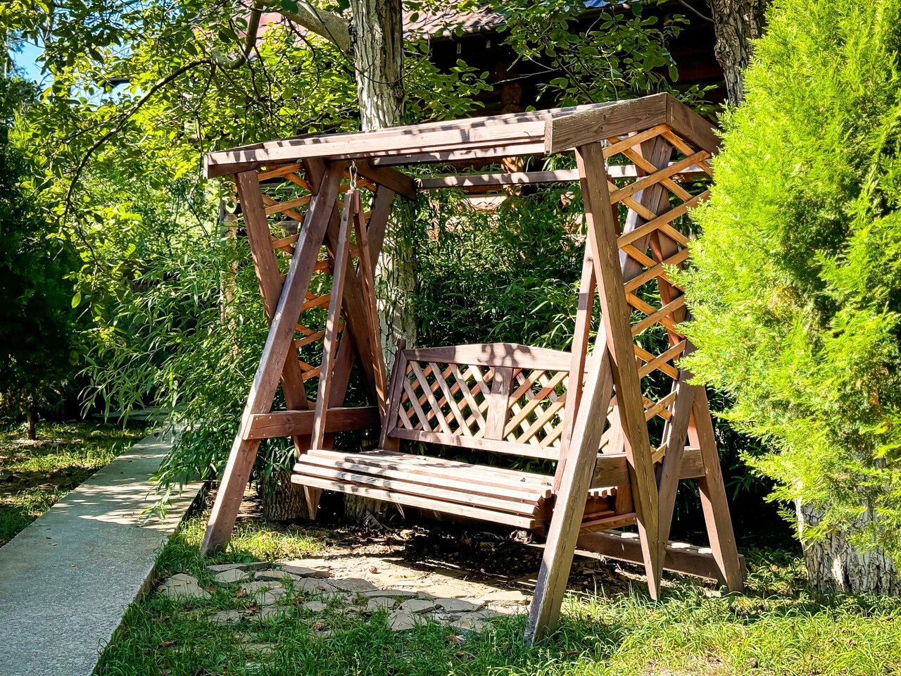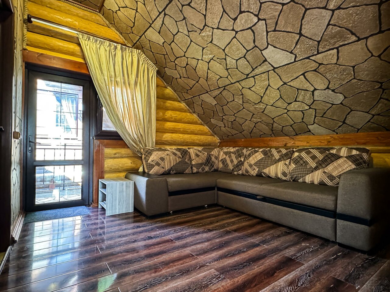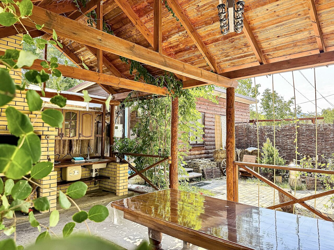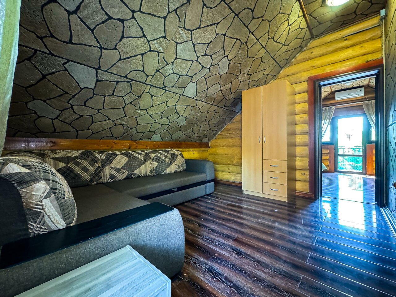 - Чан, купель, качели – все продумано для отдыха.; Профессиональный банщик и отличная баня.; Легкий пар, ароматные веники.; Зеленая территория, вид на горы.; Прекрасные домики из сруба.