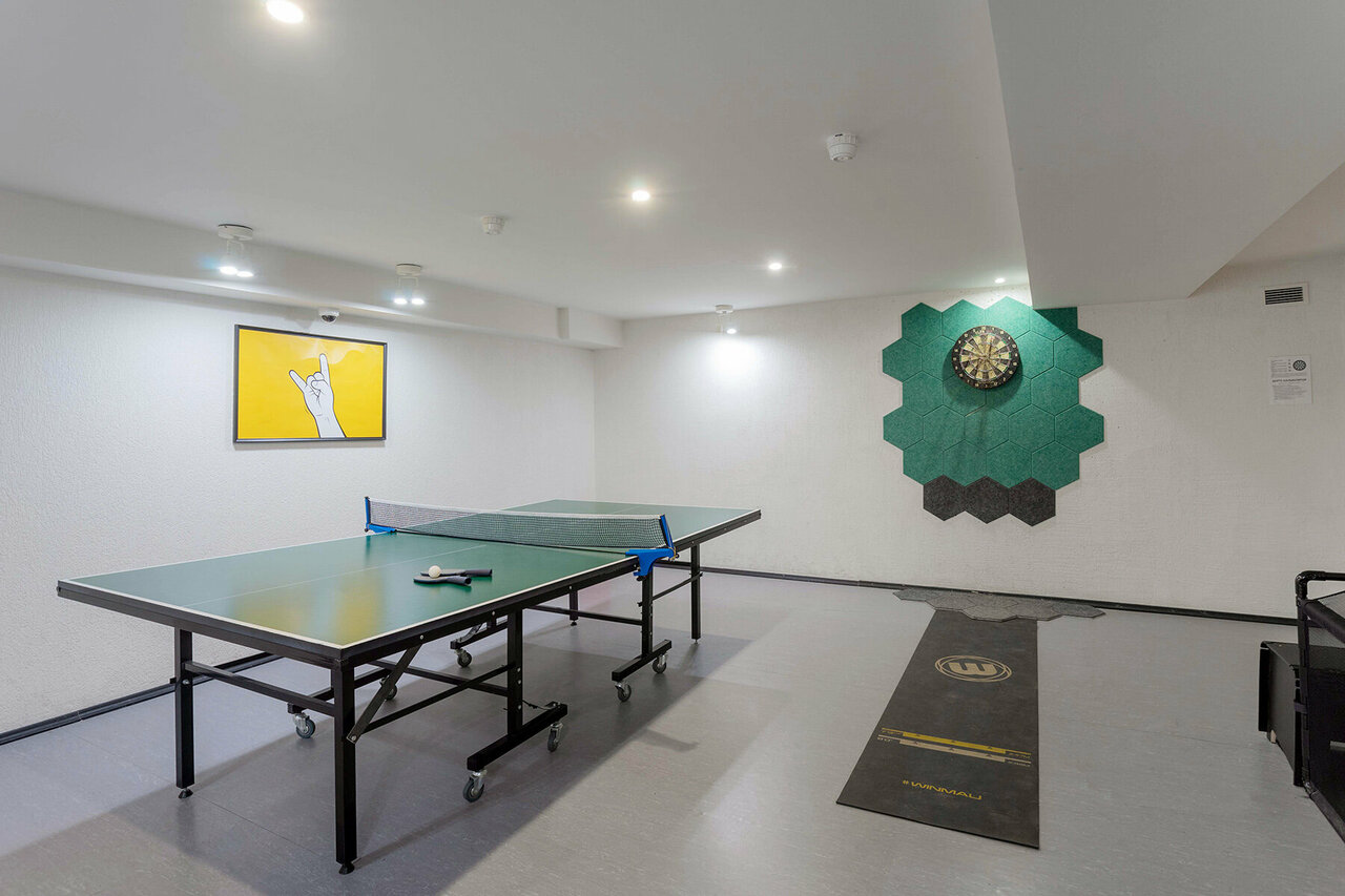 К услугам проживающих: — Номера с Wi-Fi, телевизором, санузлом, холодильником и феном. — Питание: завтрак, полупансион или полный пансион, детское меню. — Инфраструктура: ресторан, бар, тренажёрный зал, SPA, сауна, хаммам, массаж, бильярд, настольный теннис. — Для детей: игровая комната, анимация, детские кроватки (бесплатно), площадка. — Дополнительно: бесплатная парковка, собственный песчаный пляж (506 м до моря), прокат велосипедов, конференц-зал.