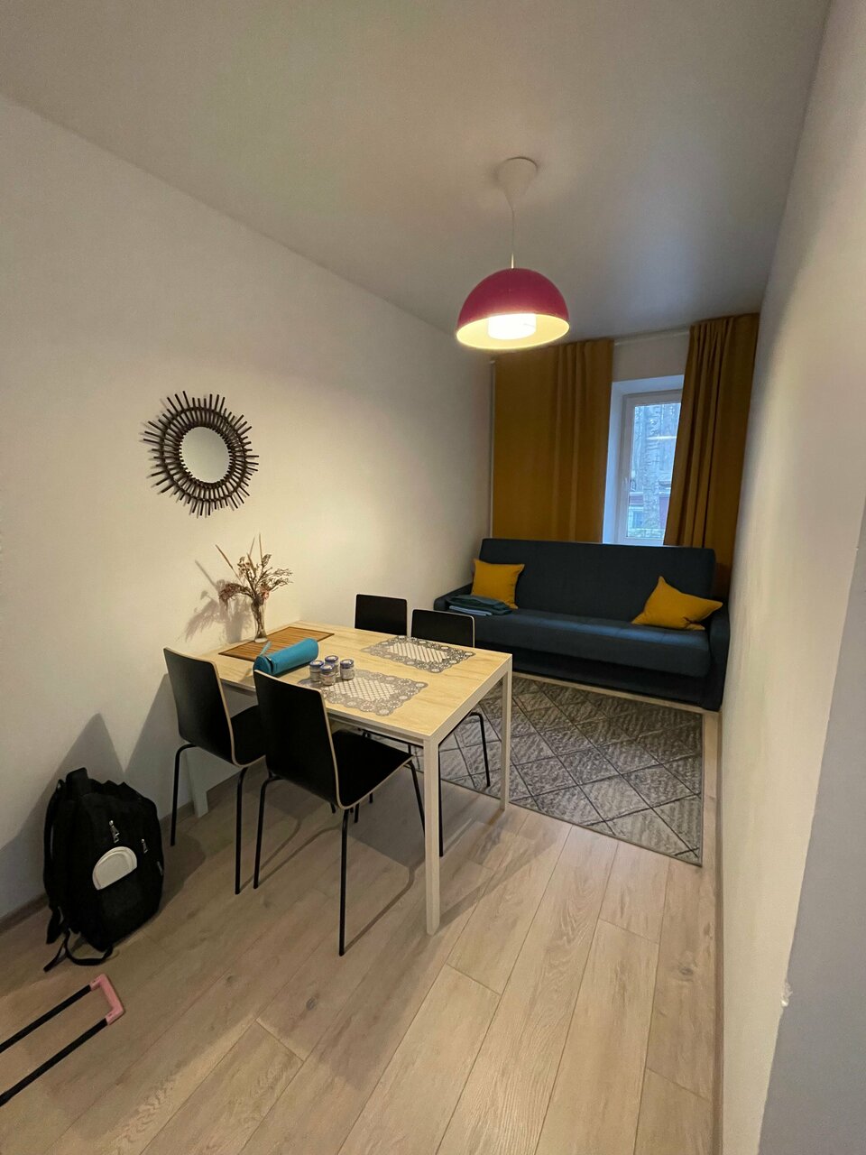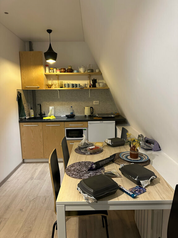 Не согласна с предыдущим отзывом о маленьком номере и завышенной ценой… обычно апартаменты это студия, где спальня и кухня в одной комнате. Здесь же полноценная однокомнатная квартира. Спальня отдельно от комнаты с кухонным гарнитуром и обеденной зоной. Огроменный балкон. Нам понравилось!