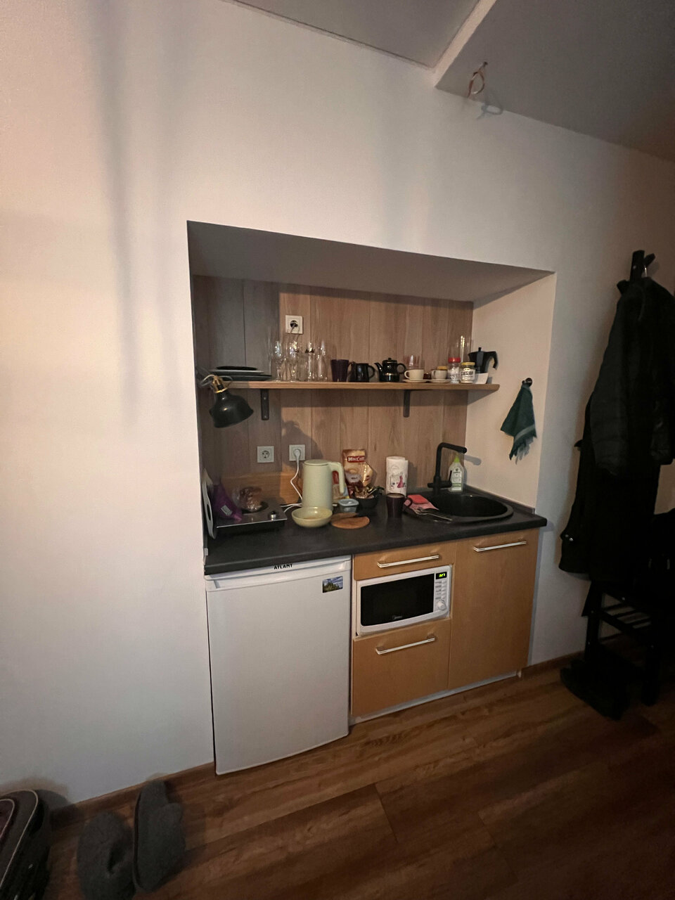- Чистый номер, мини-кухня, гейзерная кофеварка.
