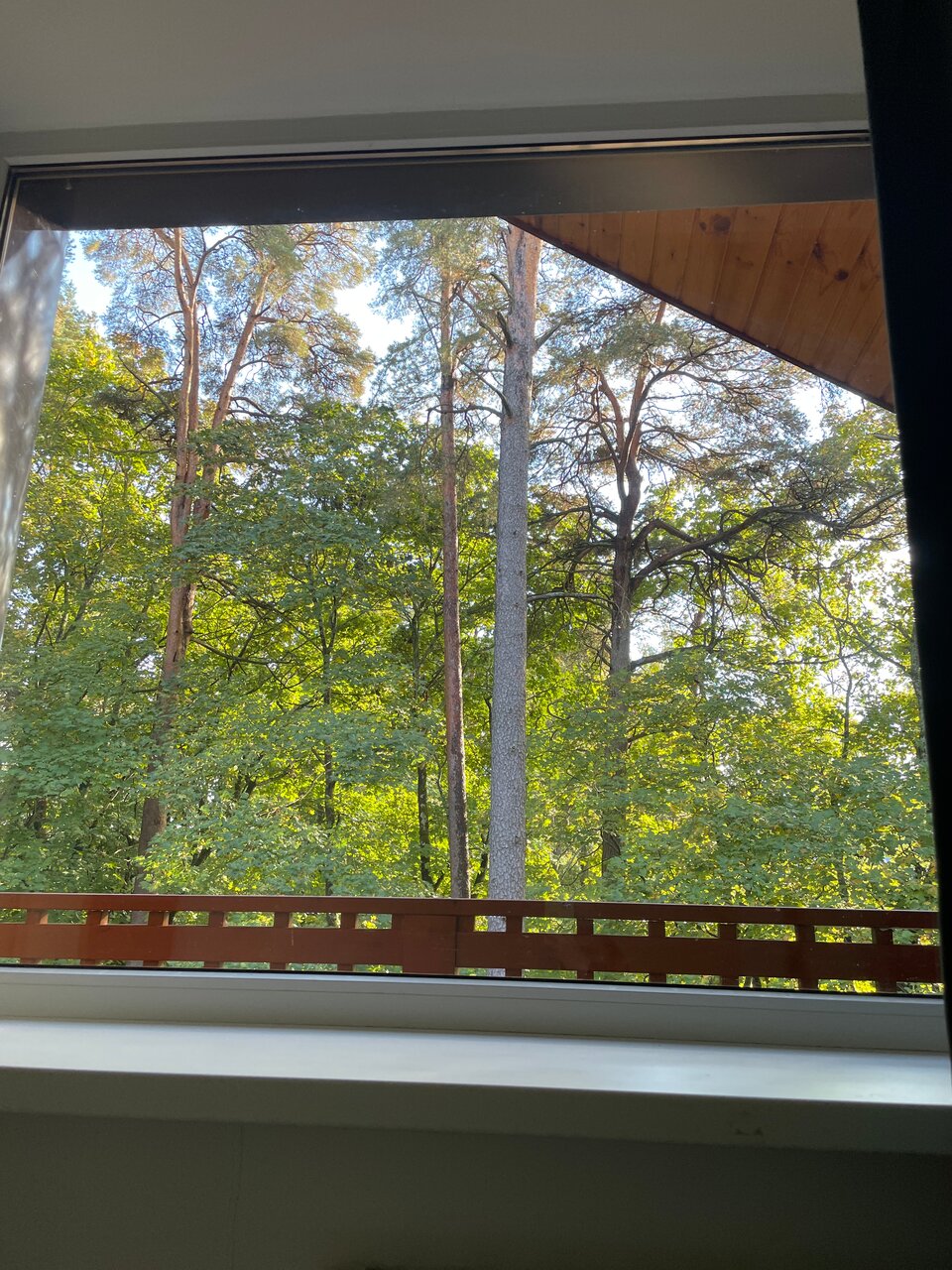 Только положительные впечатления! Гостиница расположена непосредственно на территории городского парка Зеленогорска в его лесной части — вокруг сосны, поэтому воздух просто великолепный! Т.к. все основные дорожки парка достаточно далеко, то тишину и покой ничто не нарушает. Однозначно рекомендую!
