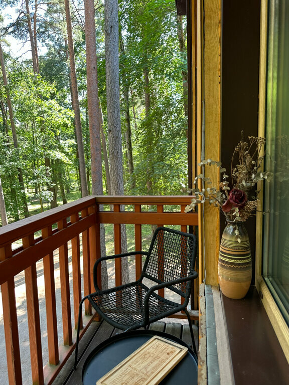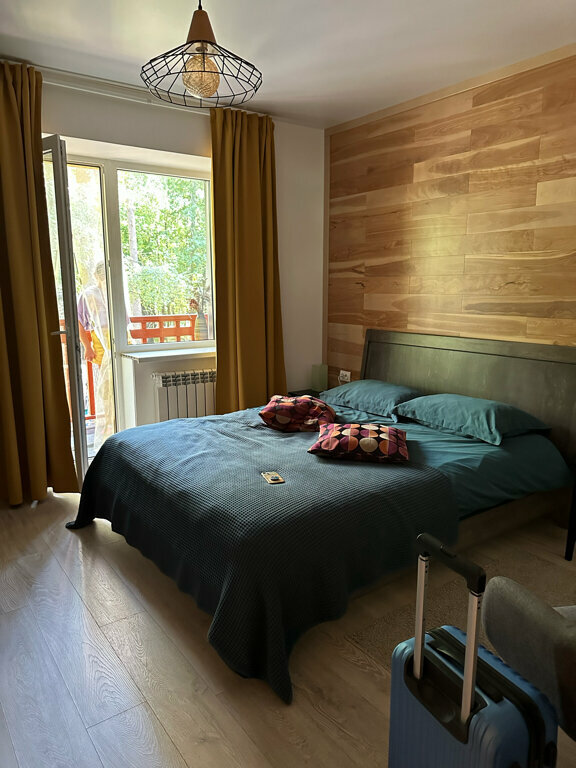 Уютная квартира с шикарным видом с балкона, в лесном массиве. Чистый номер, мини кухня, даже есть гейзерная кофеварка