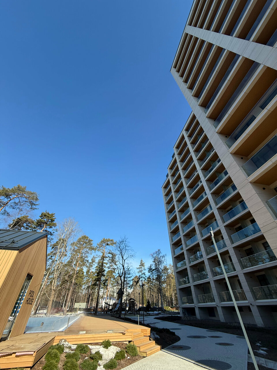 Классный современный комплекс,первая линия Финского залива,территория охраняется,красивый ландшафт,крутая детская площадка.