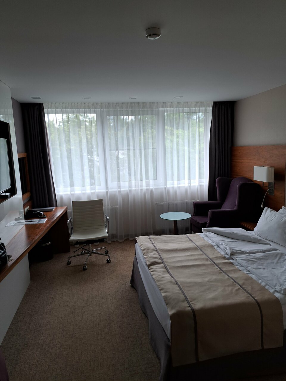 Отличная современная гостиница рядом центральным парком Зеленогорска. Есть ресторан с ценами несколько выше средних. Жалко, что нет Спа или хотя бы небольшой сауны — прогреться после зимних прогулок. Были на 3 этаже в номере стандарт — 24м2. Есть тапочки, вода 2 по 0,5, косметический набор. Сантехника хорошего качества и рабочая. Правда воду в душе немного колбасило.