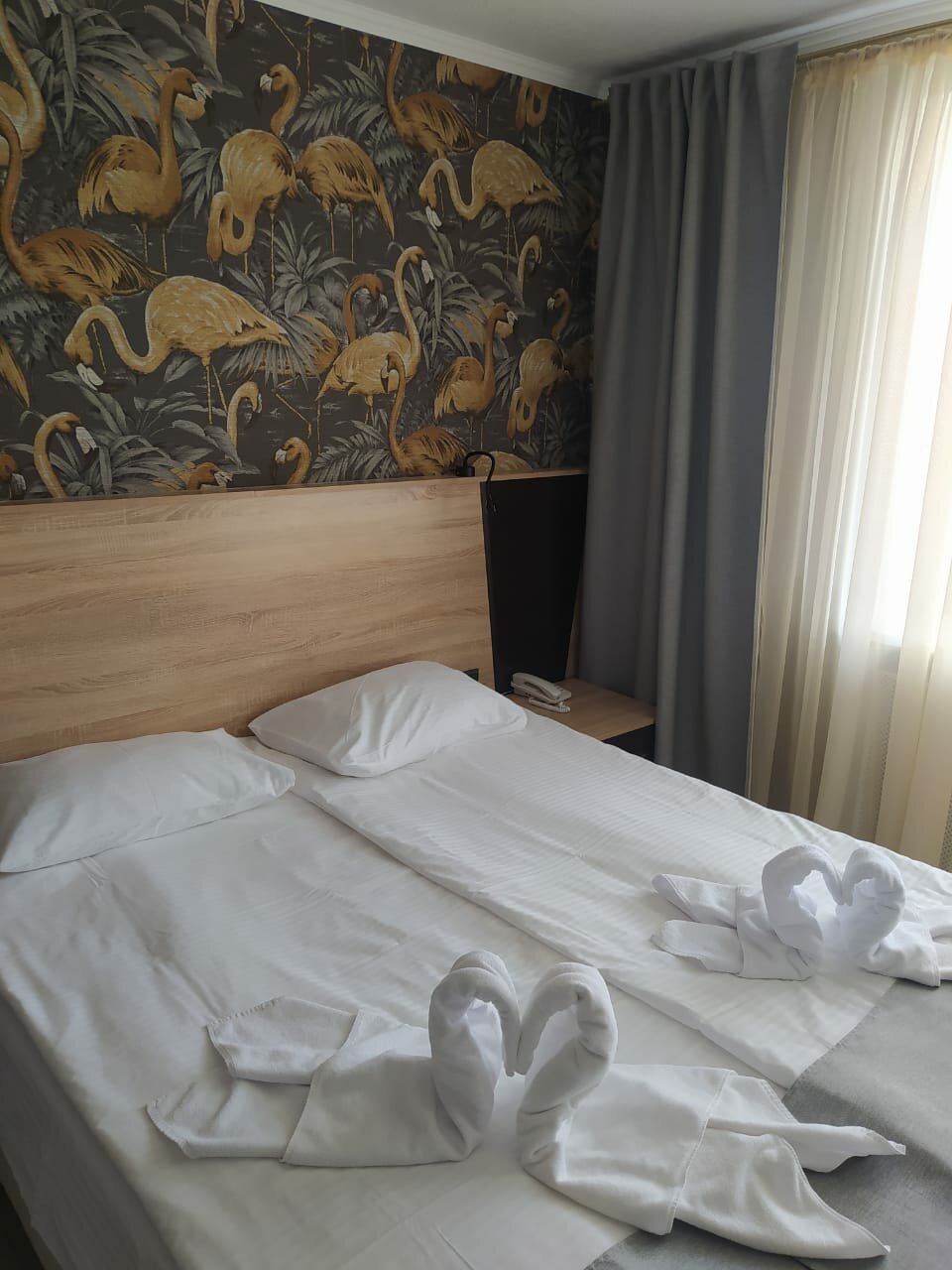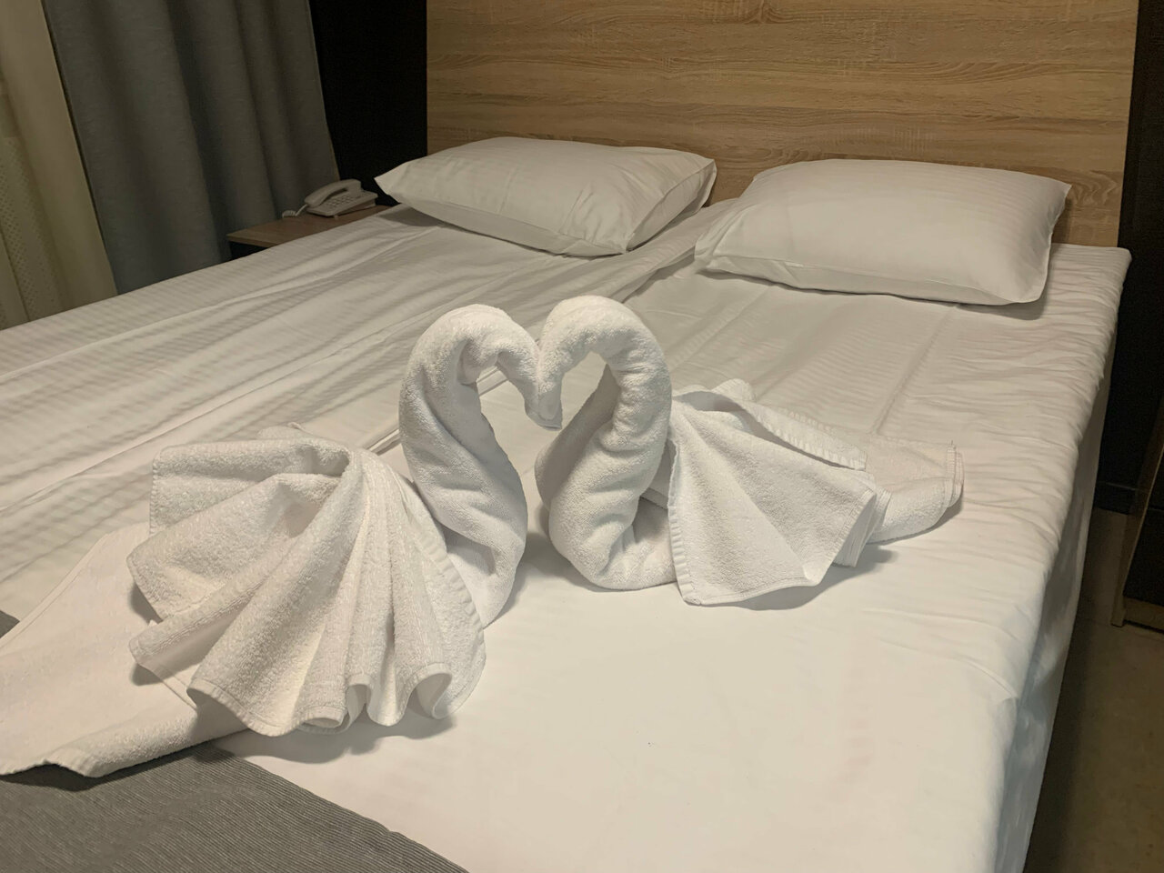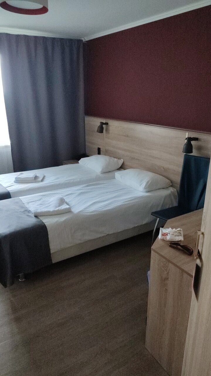 Брали стандартный номер без наворотов. Из плюсов- офигенные удобные матрасы, чистое белоснежное белье и полотенца. Внутреннее убранство номера особо не оцениваю-скромная плитка в санузле, металлическая душевая, пульт без задней крышки, недовытертая пыль, бокал со сколом… Набор развлечений и процедур огромен, все есть на сайте, но если хотите что-то получить, то придется сходить ножками, т.к. на телефон не ответили, на заявку-ноль реакции. Из минусов-слышимость в номерах такая, как будто стены даже не картонные, а бумажные. В общем…номера не для взрослых развлечений Ходили только на завтрак, шведский стол, блюд, не очень много, но вкусно и вполне хватало. Персонал понравился, читала отзывы про хамство и т.д., но ни с чем подобным не столкнулись. Через дорогу и отель пляж, залив
