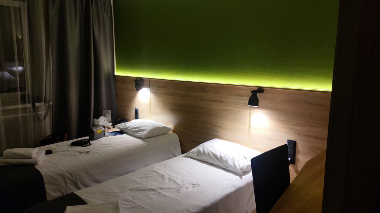Номер стандарт улучшенный 1014 на 10м этаже . Не берите!В балконной двери щель,можно ладонь просунуть. Не сразу поняла,откуда холод,уже заселилась.Затыкала,чем нашла. Предложили масляный обогреватель