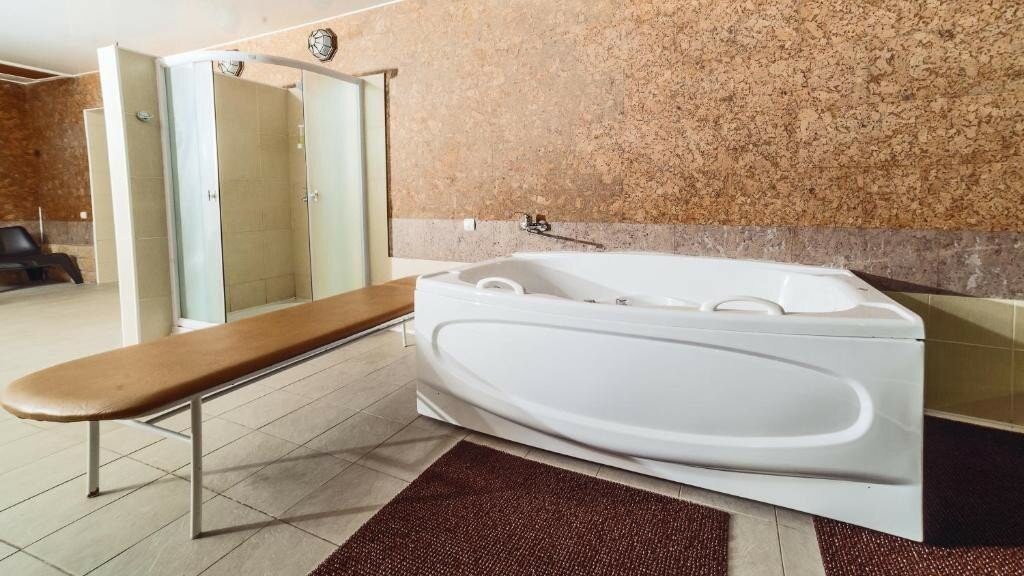 Бассейн с теплой водой, рядом с душевой и раздевалкой! В стоимость включено все для Вашего комфорта: банные принадлежности, набор полотенец, фен для сушки волос! На всей территории парк-отеля работает бесплатный WI-FI
