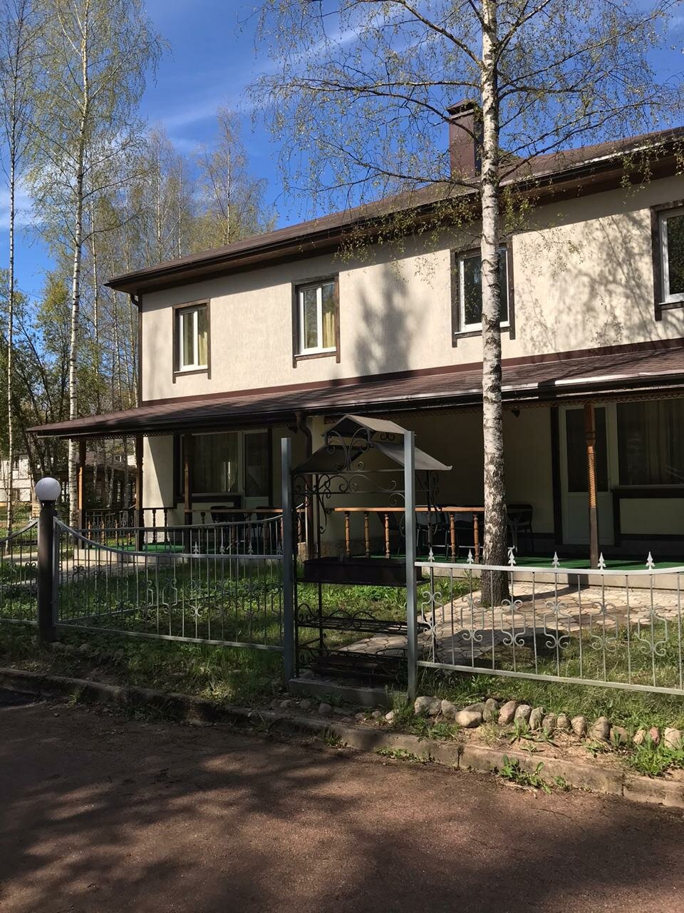 Хороший подъезд, есть места для парковки. Небольшая спортивная площадка, есть ухоженный корт для тенниса. Снимали таунхауз. Порадовал камин, погода была не очень, топили почти каждый день. Большой холл, всем хватало места). Есть свой дворик, мангал.