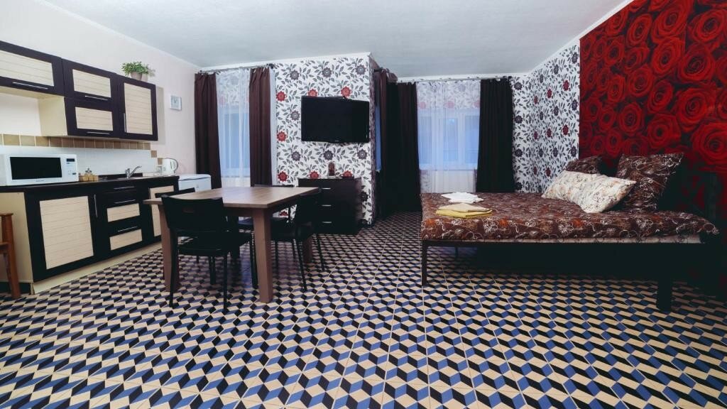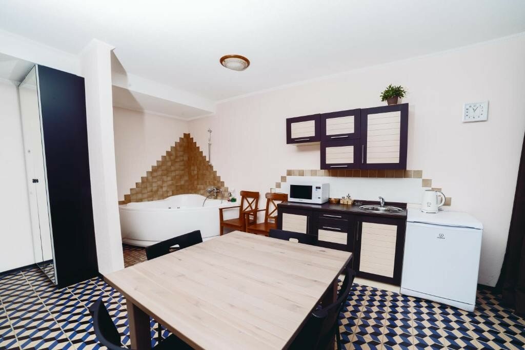 Ужаснейшее место. При бронировании по телефону отвечала приветливая девушка, все обговорили, забронировали, по фото и описанию все устраивало. Итак, день заезда. Приехали: территория не убрана, практически безлюдна, зашли на ресепшн: вместо приветливой девушки, с которой разговаривали по телефону, сидела не очень приятная женщина с грязной головой. Ладно, оплатили, прошли в номер. Номер находился на 3 этаже, номер был категории Сьюит. Телевизор в номере показывал только один канал СТС. Wi-fi в номере не ловил. Впечатление было окончательно испорчено. Решили сходить в их кафе, попить кофе, спустились на первый этаж, при нас же это кафе открыли, половина столов было заставлено. Заказали кофе, принесли 2 чашки и на протяжении последующих несколько минут доносили сахар, ложечки. Решили не оставаться в данном месте. Единственный плюс данного заведения- деньги вернули сразу и ничего не удержали за пребывание в номере 2 часа.