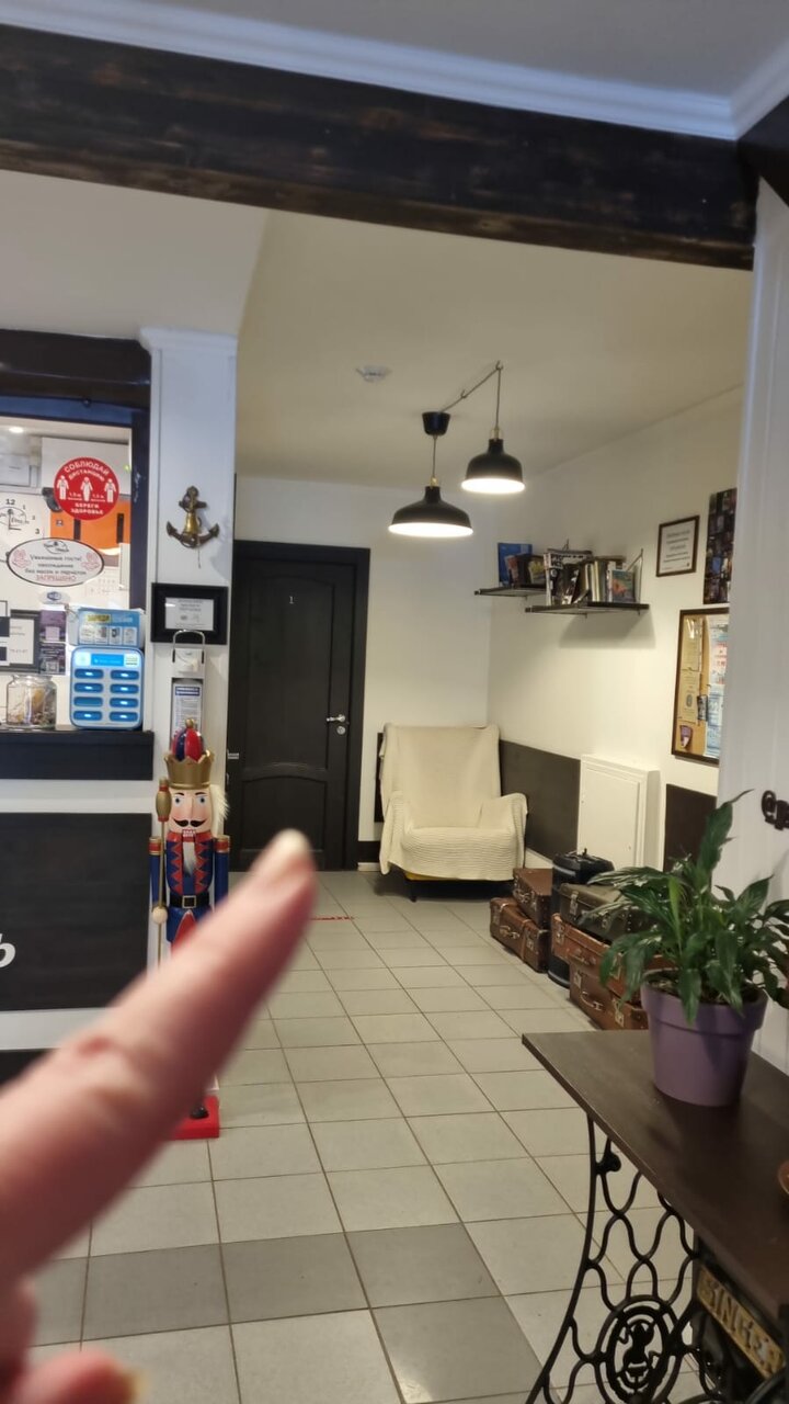 Плюсы: Ставлю 1 звезду за местоположение и детскую площадку во дворе. Минусы: 1) заезд задержали больше чем на час. 2) поселили на 2 этаже- дышать нечем, чуть не загнулись. Видать нагревается крыша, и даже ночью она не остыла.. 3) шторки в туалете/душевой нема. Сделал дело и давай ‘свети’ своим Приапом в окно всем на радость 4) Полотенце так и не дали. Вообще!!! Хотя кормили завтраками до 23.00 что ‘ща все будет’. 5) завтрак шикарен, особенно муравейник в сахарнице. 6) цены круче чем в Москве в том же Космосе… Как за номер, так и за все продукты/услуги. На свой страх и риск господа, на свой страх и риск…