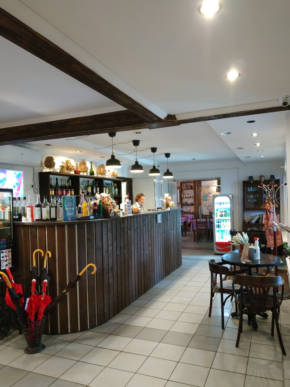 Зашли в ресторан при отеле. Персонала нигде не было, ни на ресепшн ни за стойкой. Через время пришла девушка, мы сами попросили меню, нам его дали через стойку с фразой ‘посмотрите, подойдет ли вам’ Меню снаружи текстильные с пятнами на обложках и внутри. Ценник ближе к ресторанному, меню ближе к обычному кафе. В зале было много столиков с неубранной посудой, сидеть там не очень приятно из-за этого. Из плюсов — детский уголок просто супер. Но есть тут мы не стали, пошли в другой чуть более дорогой ресторан, но с хорошим обслуживанием и интересным (и чистым) меню.