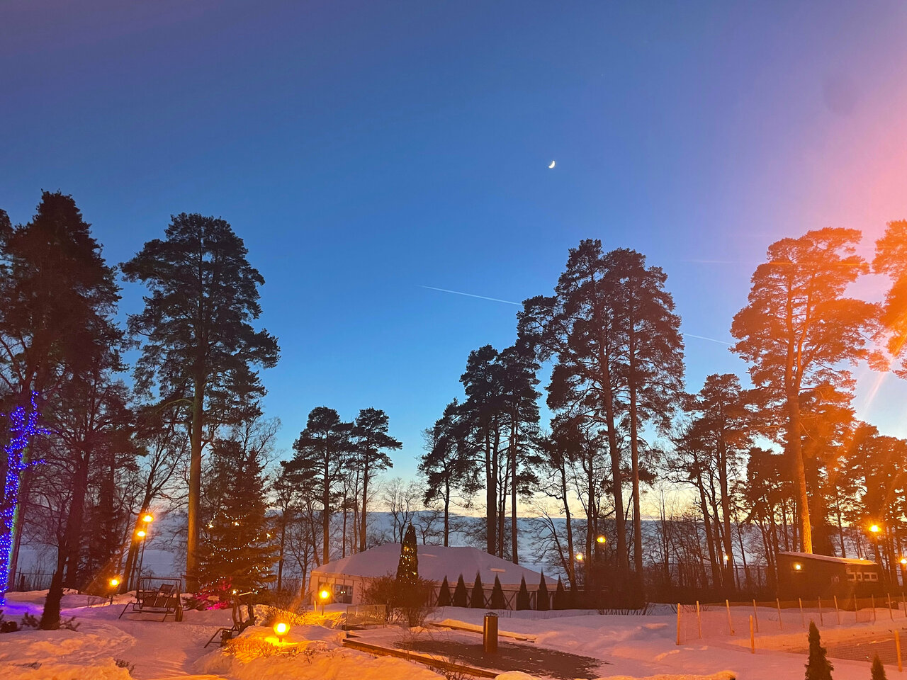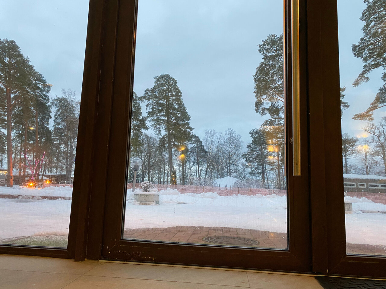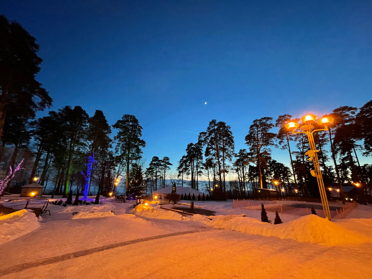 Территория рядом с Финским, ухоженная, уютная. Номера изрядно изношенные. Звукоизоляция ужасная. Матрас жутко неудобный, положенный на скрипящее основание — ощущения как на раскладушке. Половина номеров — вид на шоссе. Завтрак — в целом вкусный, но такого разнообразия было бы более чем достаточно в 3*, но не когда ты заявляешься 5*: нет сухофруктов, орехов, лимона к чаю, соусов (выносили разве что бутылку кетчупа по запросу), один суп, одна каша, не вкусный кофе, мало выпечки, салатов, подкладывают нестабильно, так что можно прийти чуть позже и не обнаружить чего-то. Спа-зона небольшая, хаммам и сауна уютные. Бассейн с очень прохладной водой. Шезлонгов мало, часть удобные, часть очень не удобные. Все нерегулируемые. В спа-услугах заявлено парение в бане, но после запроса нам сказали, что парильщиков в ближайшие дни у них нет. Из плюсов: залит небольшой каток с бесплатным прокатом коньков, горка с парой ватрушек.