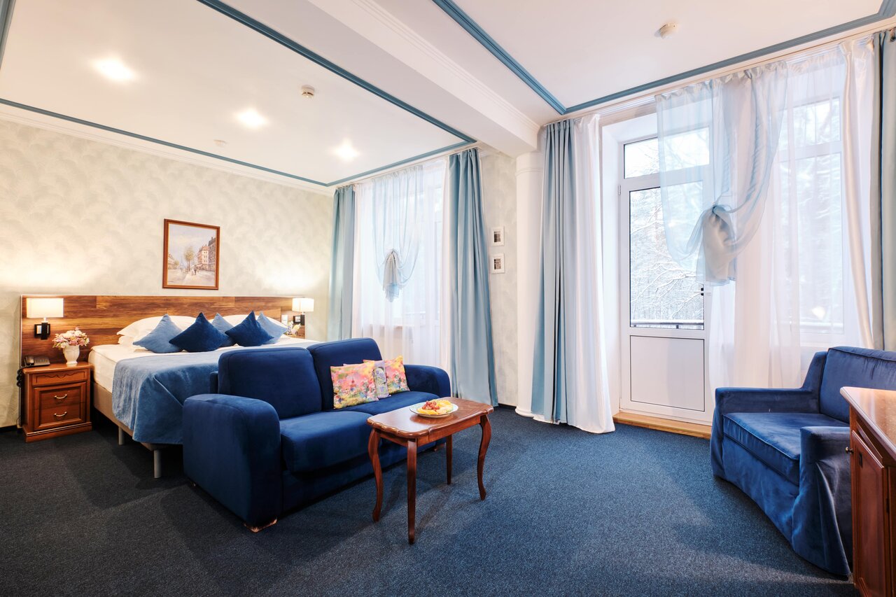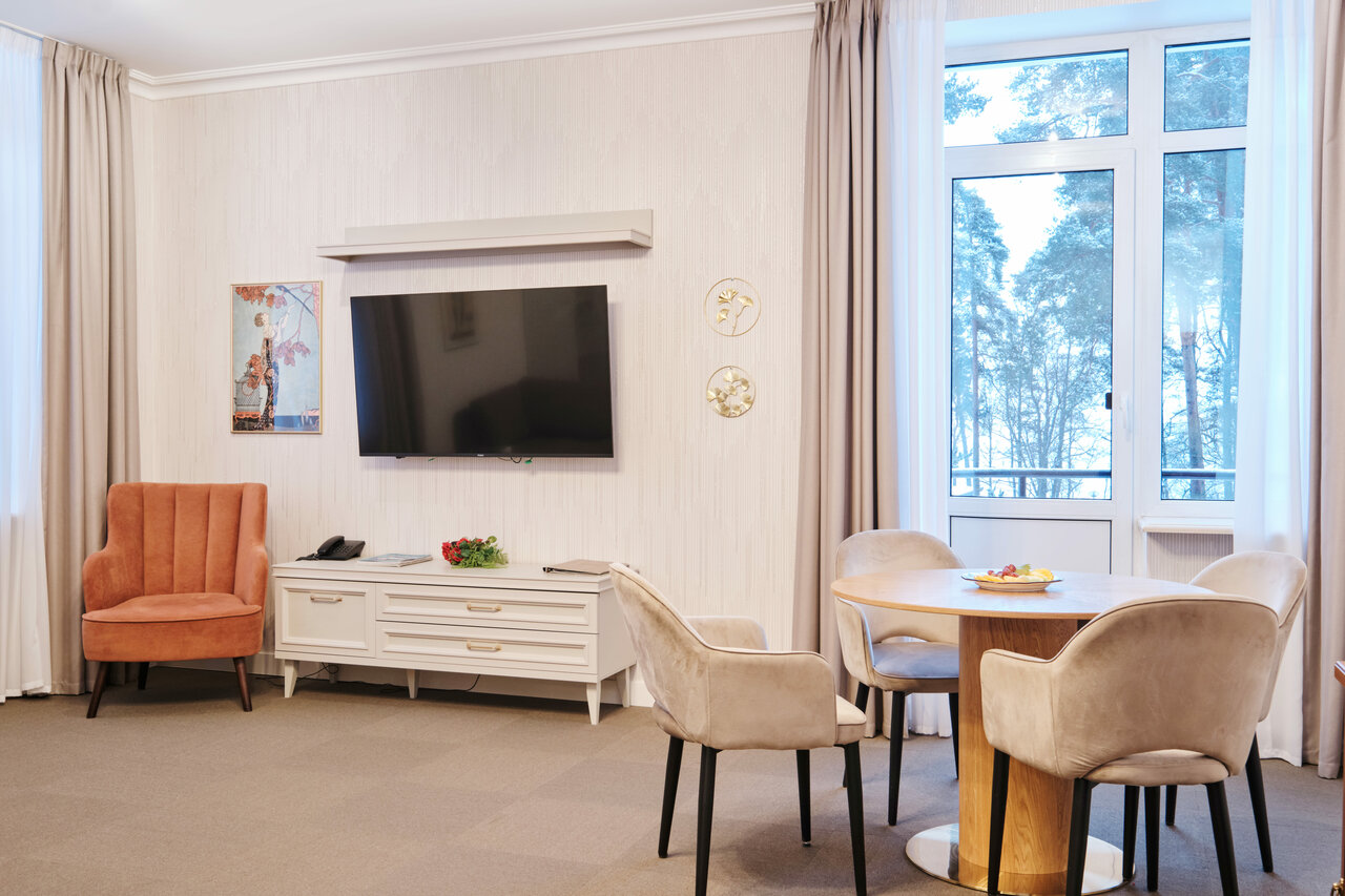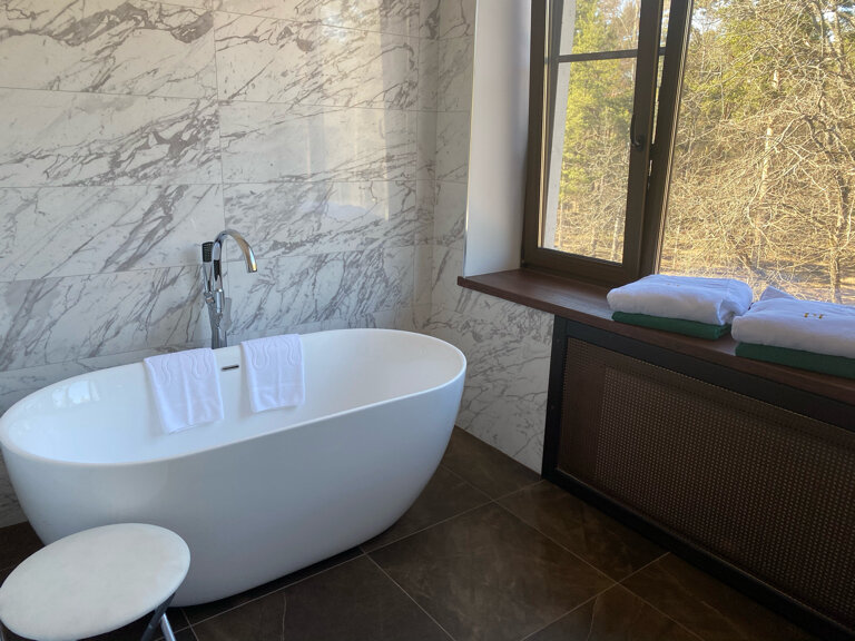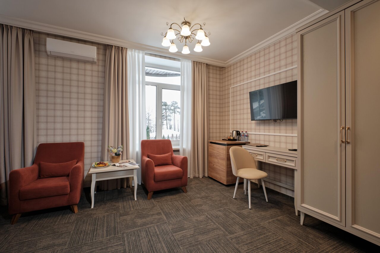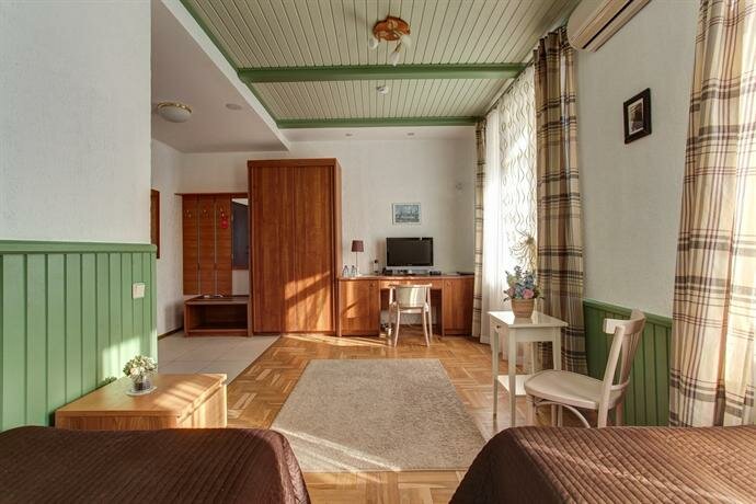 Очень классная гостиница, приветливый и отзывчивый персонал. Обалденный бассейн и хорошие сауны. Очень понравилась территория. Безумно здорово, что можно прямо изнутри попасть в ресторан ‘Птички и ягоды’, который невероятно чудесный с очень вкусной едой. Сняла звезду за состояние номера, для делюкса плюс, очень пошарпаный, давно требует ремонта и из душа вода вытекает на пол всего сан узла. Нечем было даже вытереть.