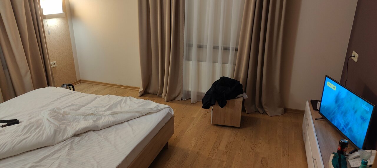 Отель не соответствует заявленной звездности. В стандартном 1местном номере нет холодильника, нет шкафа для одежды, всю одежду и верхнюю и рубашки с костюмами предлагается повешать на вешалку для верхней одежде с 4мя крючками, т.е одно на другое вперемешку. Нет элементарного стула и стола. Убираются плохо, при заезде администратору было указано на грязь в номере, женские волосы на полу и т.д. никто ничего не убрал. Да и за 4 дня проживания кроме застилания постели уборки замечено не было. Wifi очень плохой. Порадовал ресторан, очень вкусно, но если питание включено в проживаниие то будет выбор из 3х вариантов салат-горячее и это на всю неделю, этого конечно мало. Вывод внимательно читайте описание номеров и отзывы, потому что описание отеля на сервисе Яндекс не соответствует действительности.